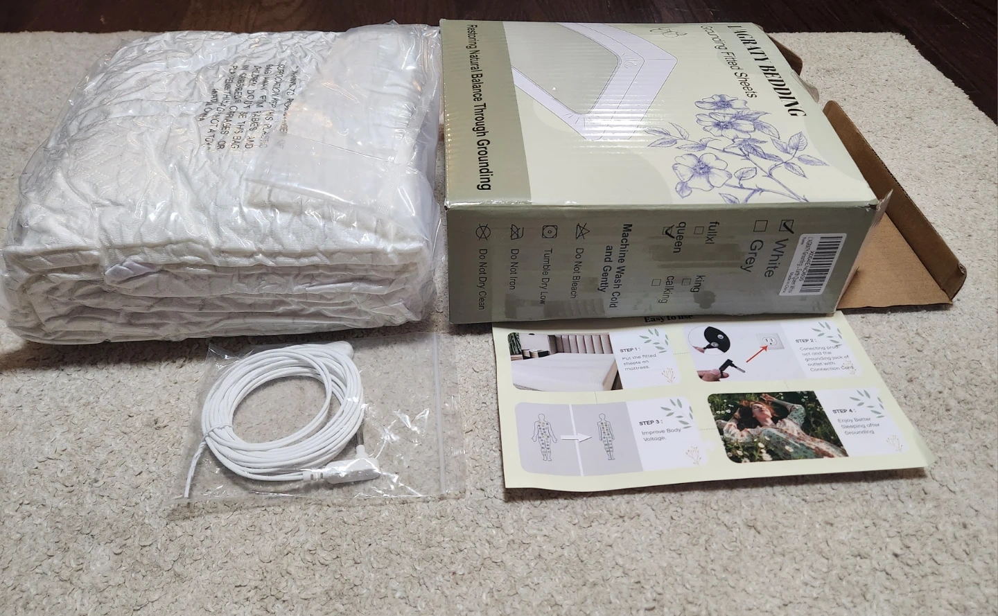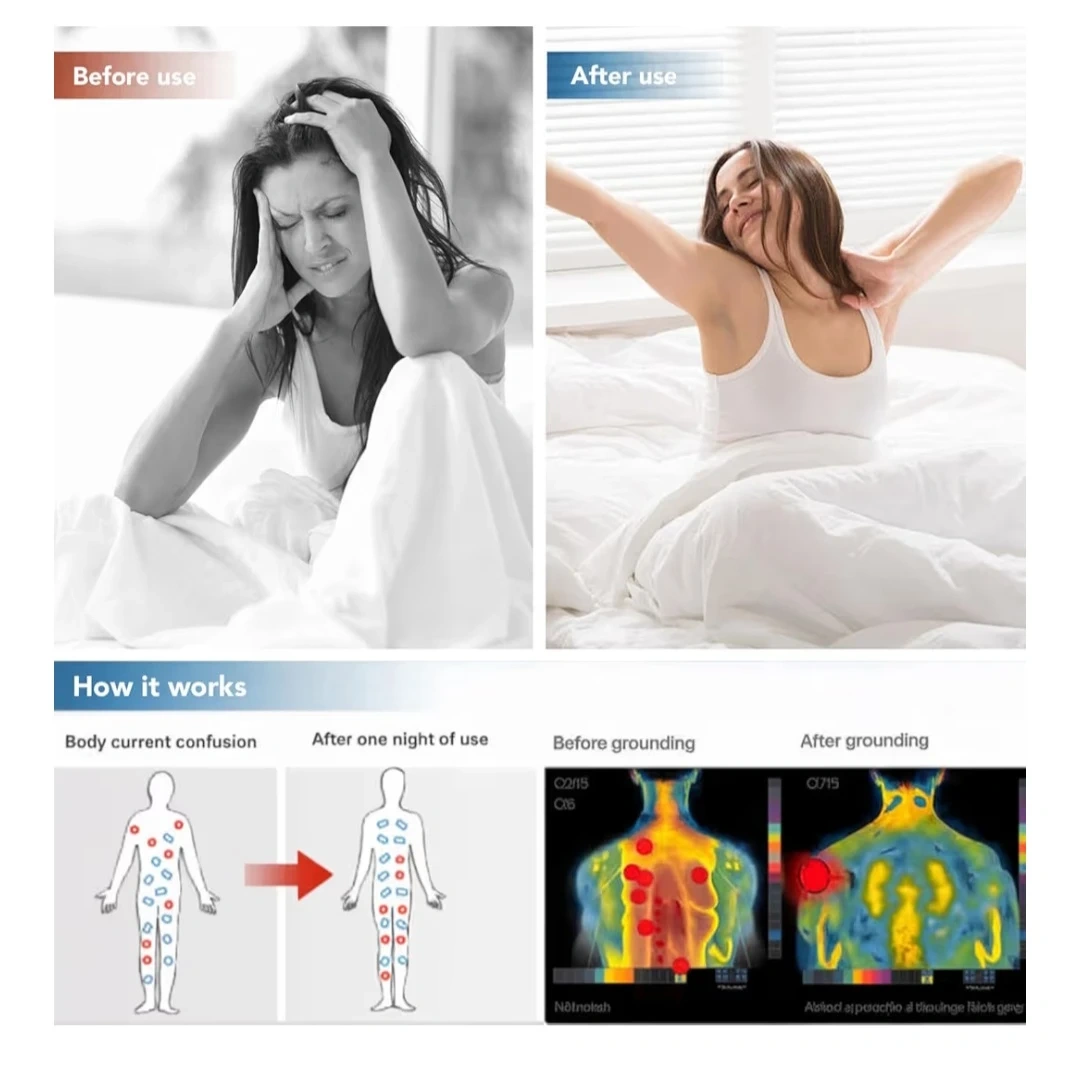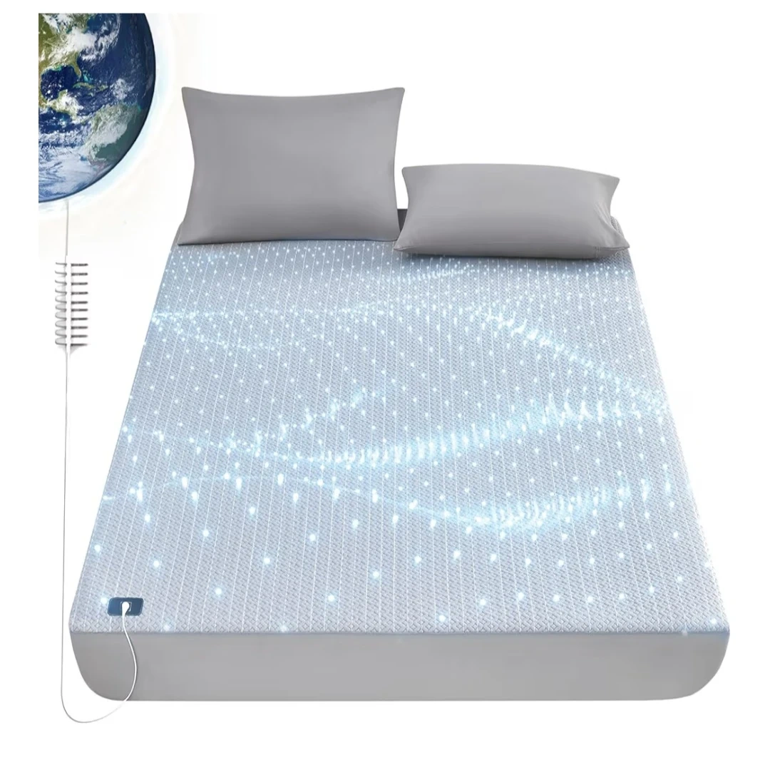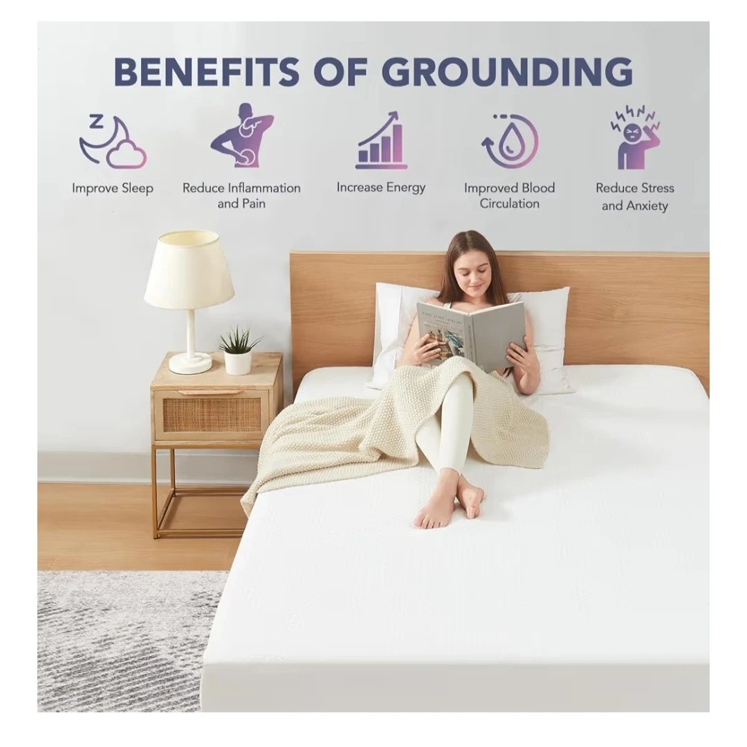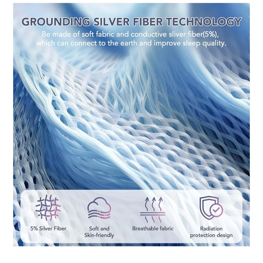 5% Sliver Fiber Fitted Sheets Connected Earth, Deep Pocket(12-16in) Grounding Mattress Cover with Cord(Queen,White)