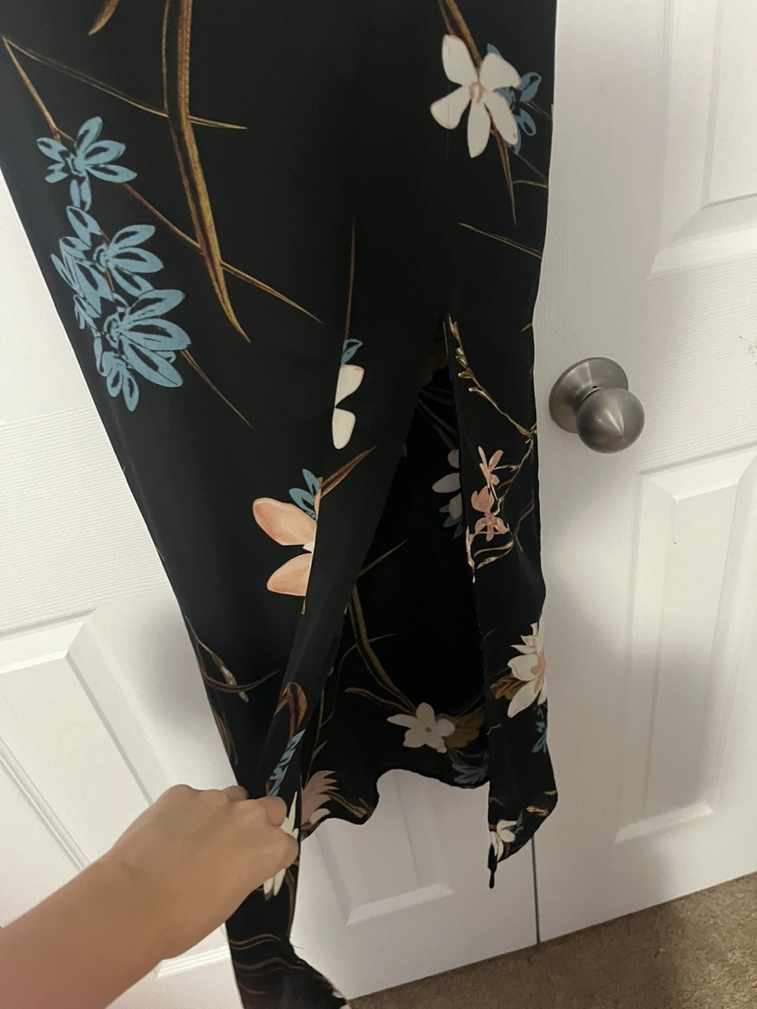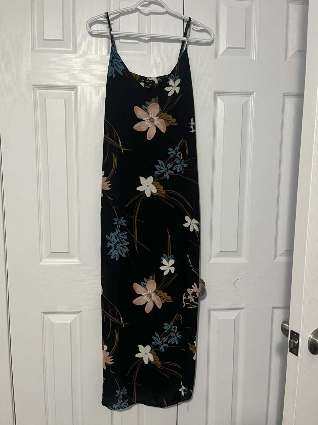Selling a beautiful Revamped maxi dress with a floral pattern! It's a size medium and features a stylish slit. Perfect for a summer day or evening out