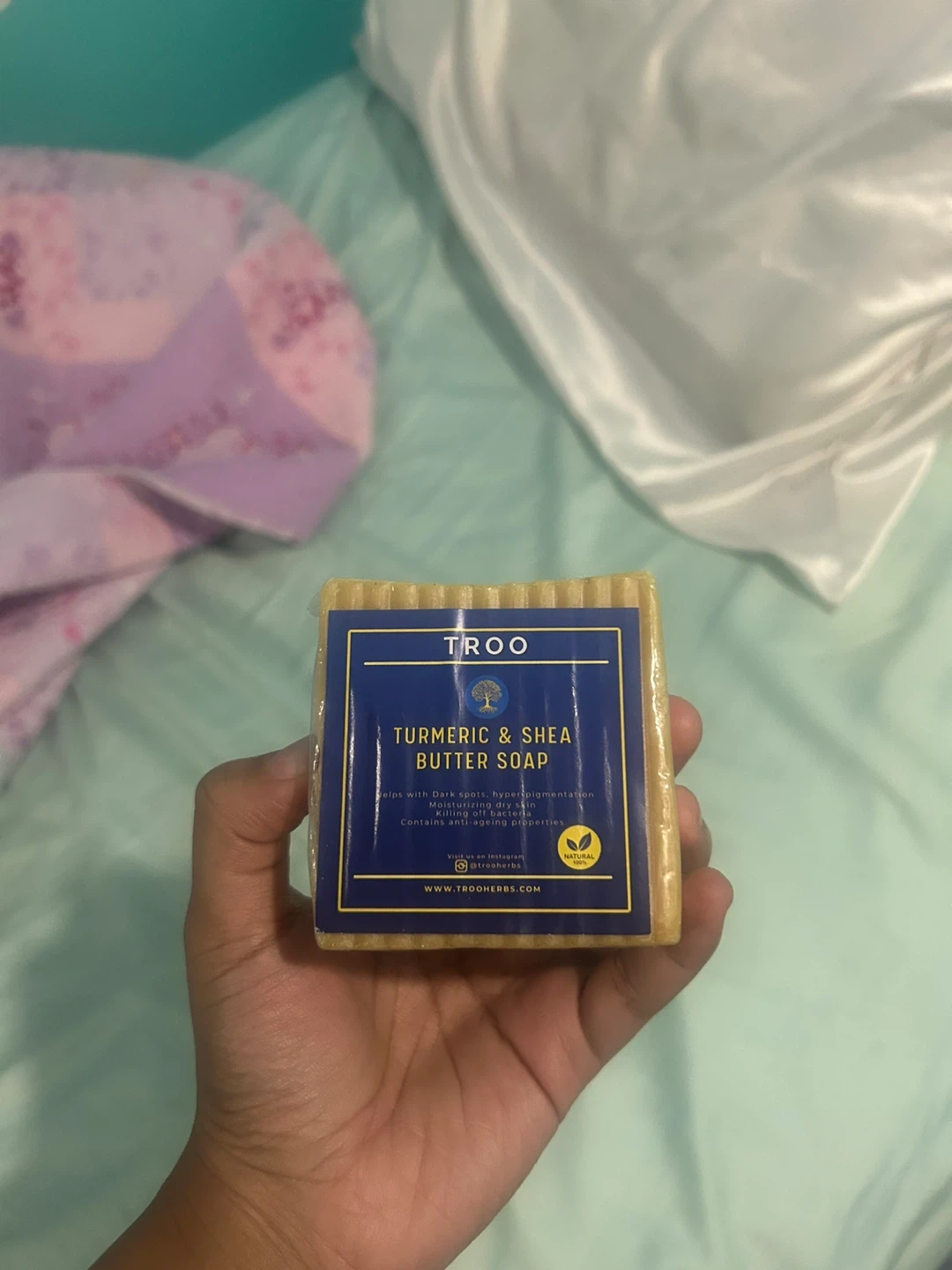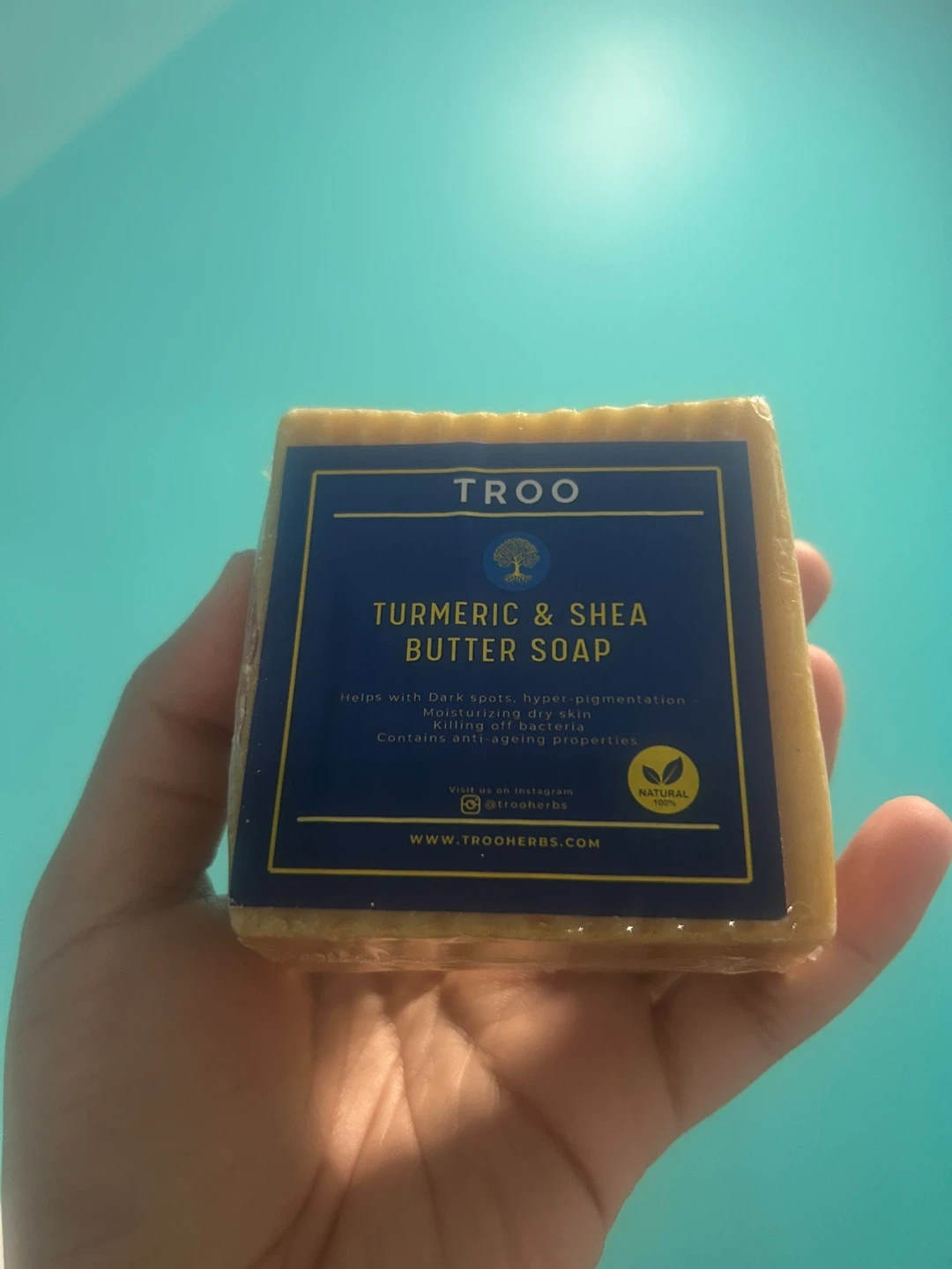 I'm selling a TROO Turmeric & Shea Butter Soap. This soap helps with dark spots and hyperpigmentation, and is moisturizing for dry skin. It also contains anti-aging properties and kills off bacteria. It's a natural product!