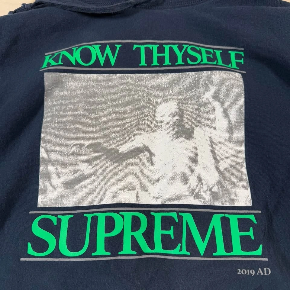 Buy & SellSupreme “Know Thyself” Hooded Sweatshirt Navy (SS19) Sz LargeSupreme “Know Thyself” Hooded Sweatshirt Navy (SS19) Sz Large$140In good preowned condition. Lightly faded. Men’s Large. Measurements in pics.WHERE TO MEETWalmart parking lotView MapSELLERNRSouth Setauket261 review0 chats·0 favorites·0 viewsSEND CHAT TO SELLERHi NR! I’m interested in your listing.Hi NR! I’m interested in your listing.Get the Karrot app to chatSign In to chat