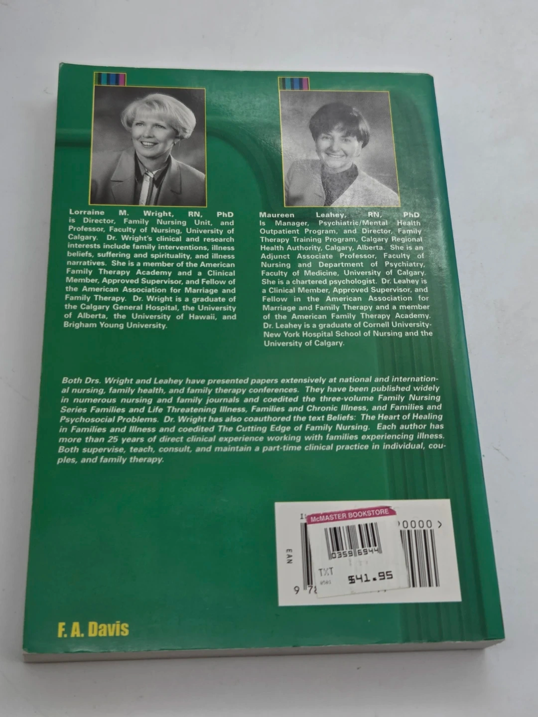 Selling a copy of "Nurses and Families: A Guide to Family Assessment and Intervention, third edition" by Lorraine M. Wright and Maureen Leahey. The book appears to be in good condition and originally retailed for $41.95.