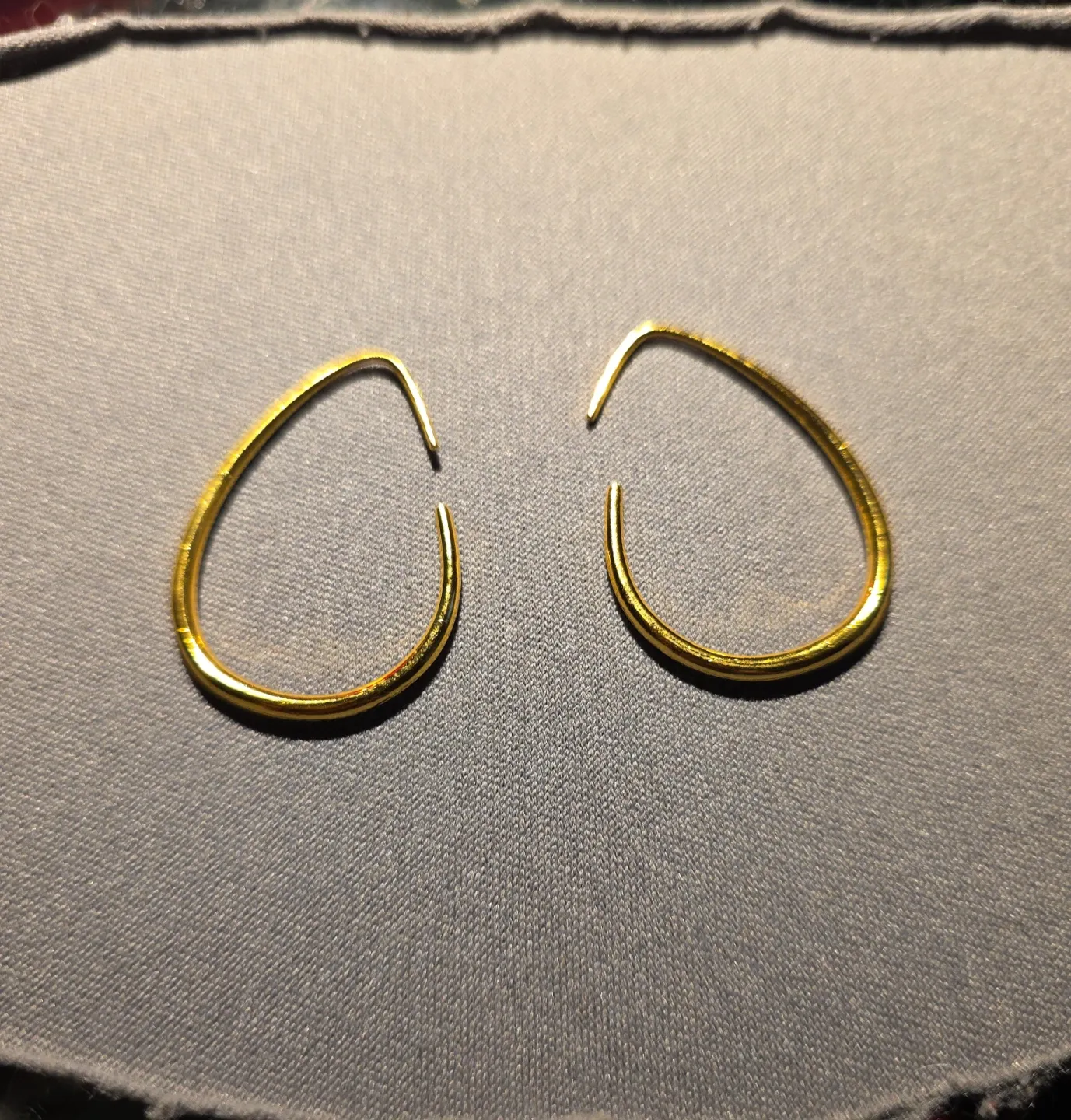 Sleek Minimalist Water Droplet Design, Crafted from Copper And Embodying a Vintage Elegance Perfect for Everyday Wear. Selling a pair of gold teardrop hoop earrings. They're in great condition and would be a lovely addition to any outfit!