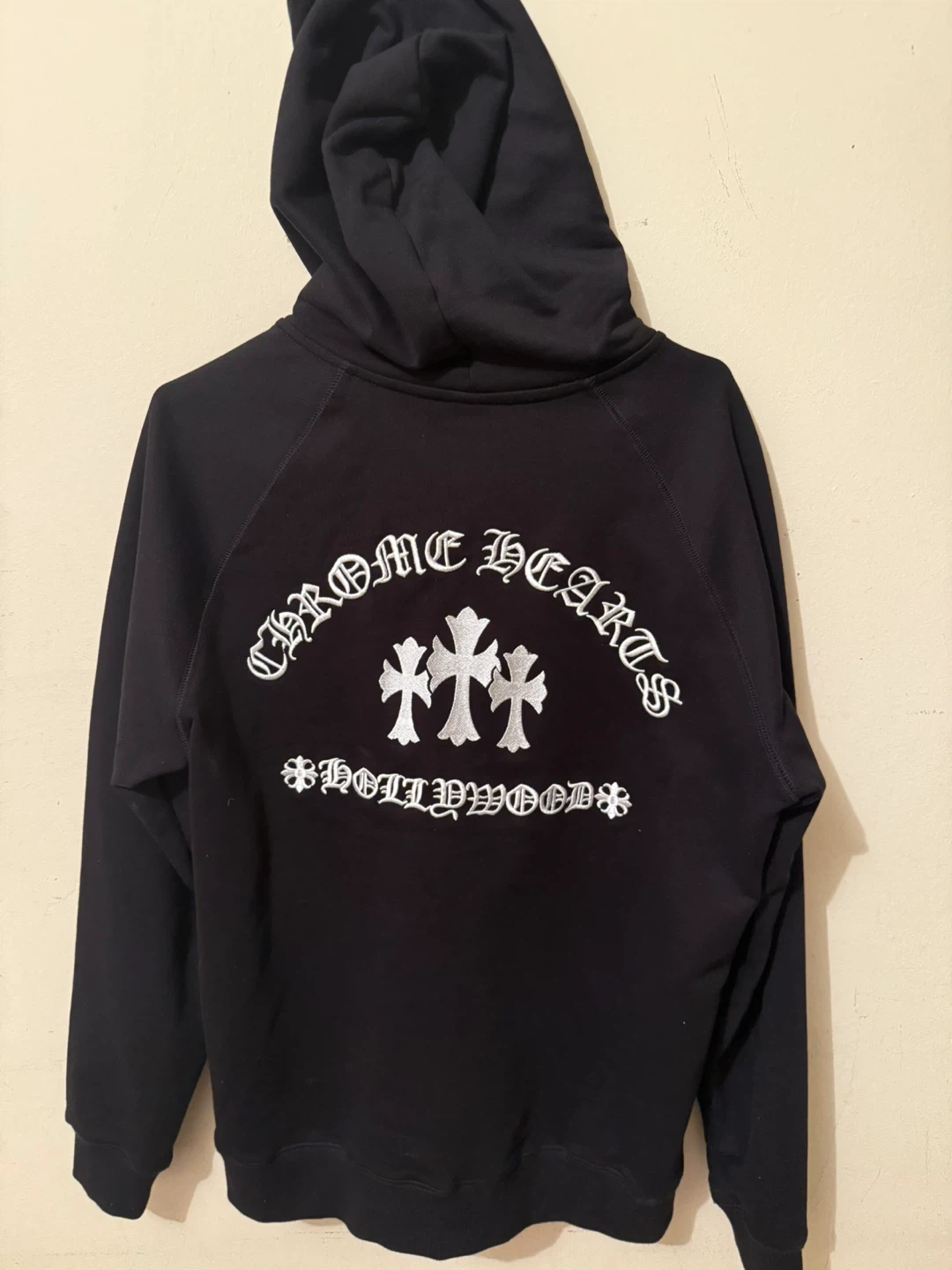 Selling a Chrome Hearts Hollywood hoodie in black. It features the iconic Chrome Hearts logo on the back.