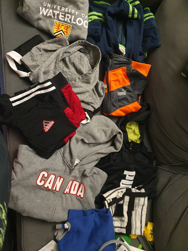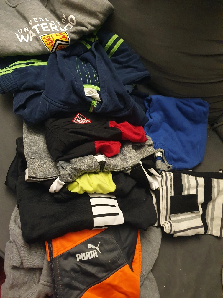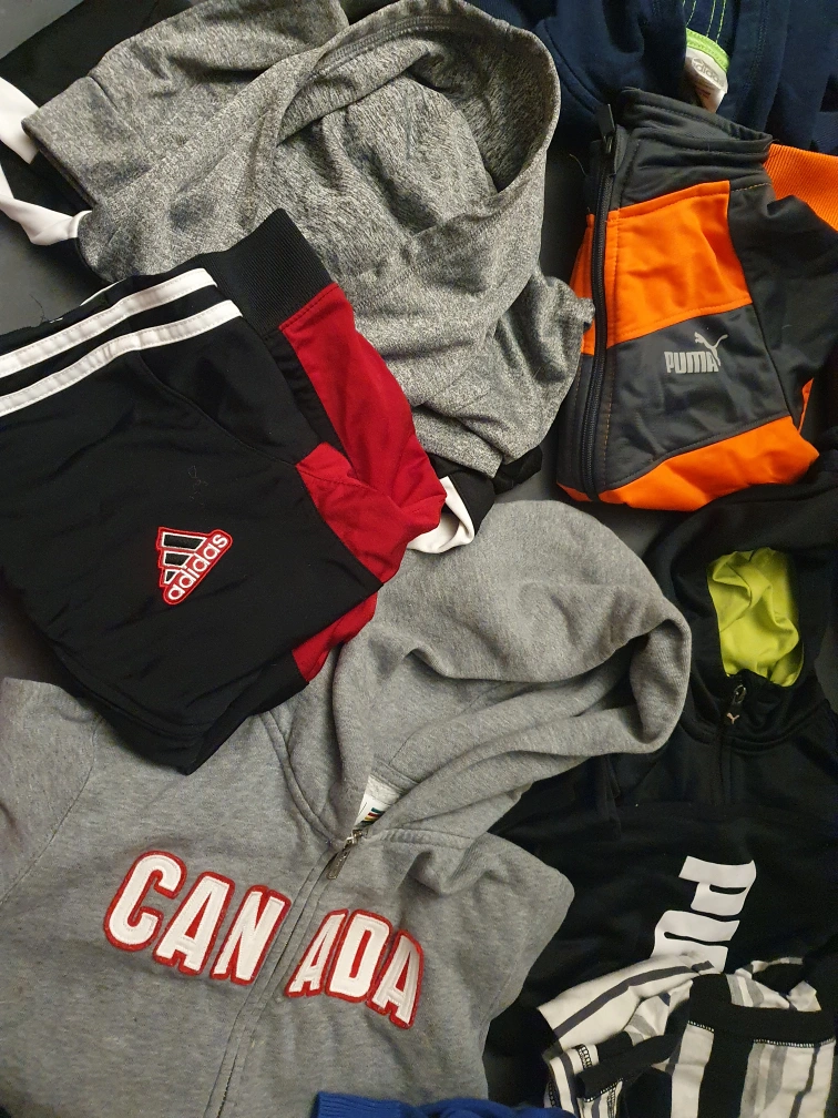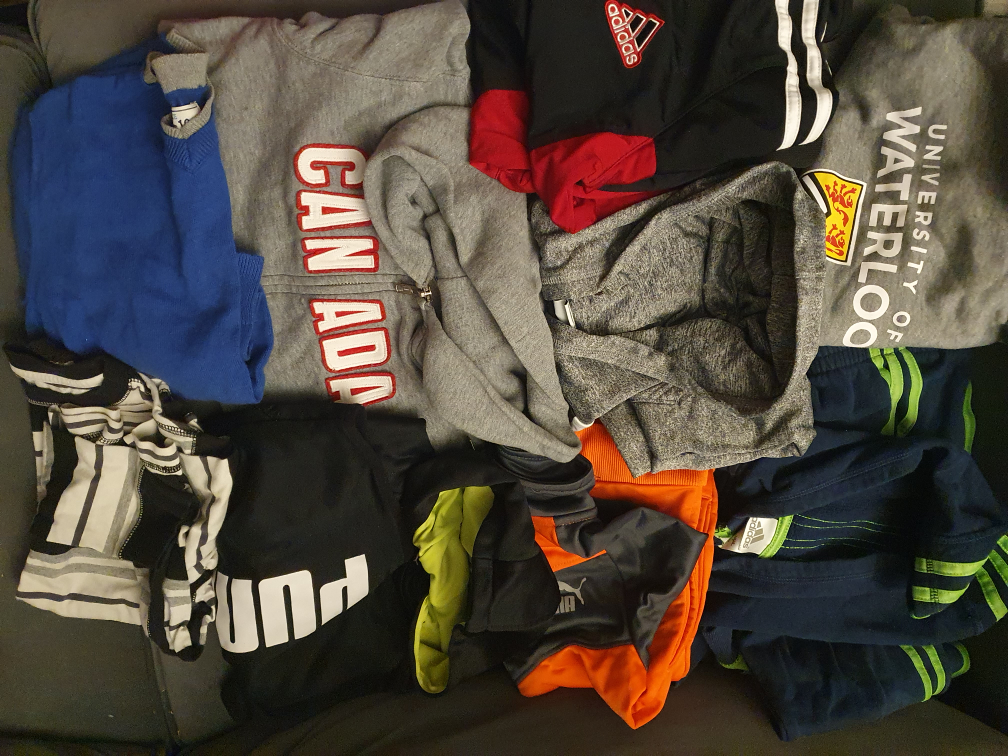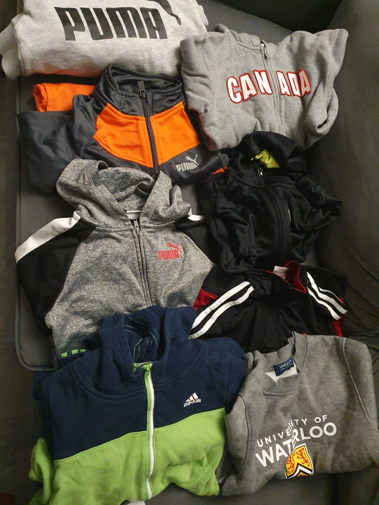 Selling a mix of kids' hoodies and jackets. Includes brands like Adidas, Puma, and a Canada-themed hoodie. Good condition. $2 for each some are set. Or all for $10