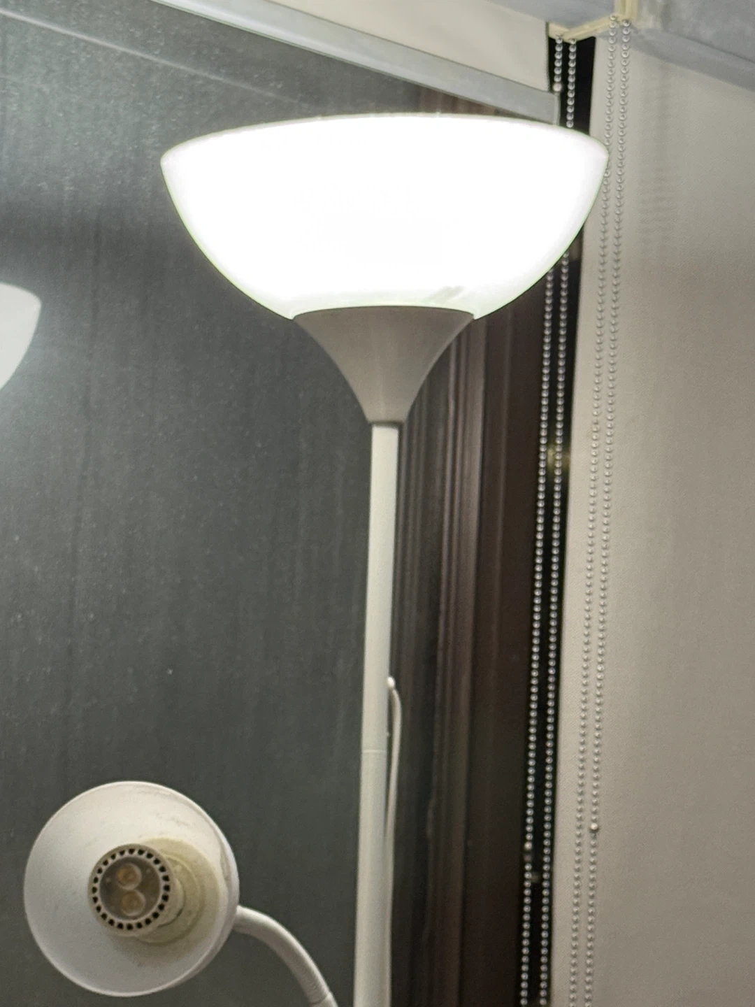 Here's a floor lamp with an additional reading light. It's in great shape and ready to brighten up your space!works great .selling without bulb please java eyour bulb ready.