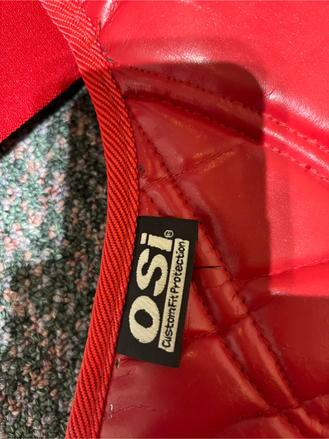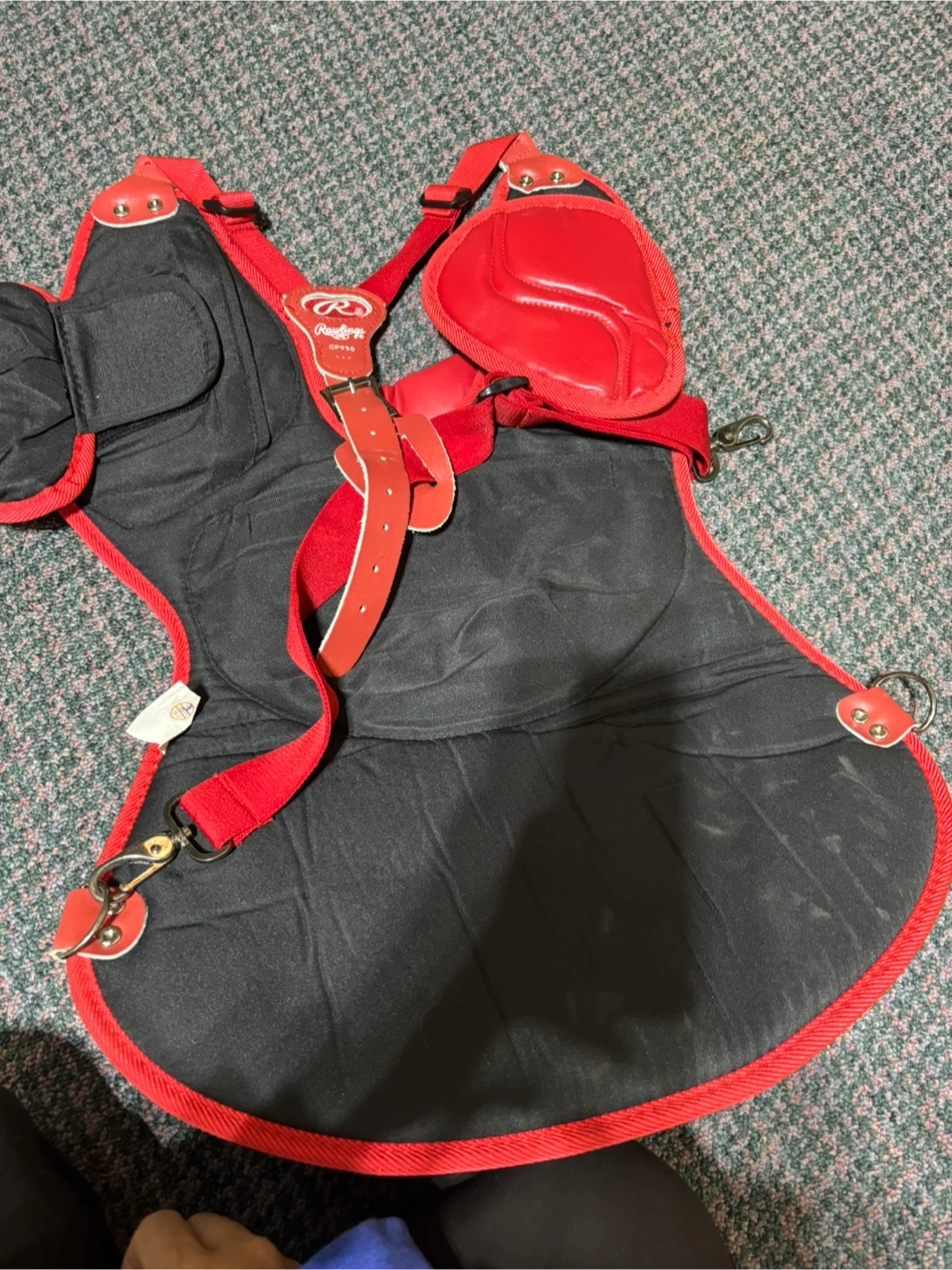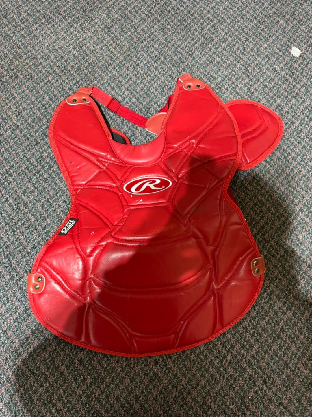 Selling a Rawlings catcher's chest protector in red. It features OSI Custom Fit Protection. Great for baseball season!