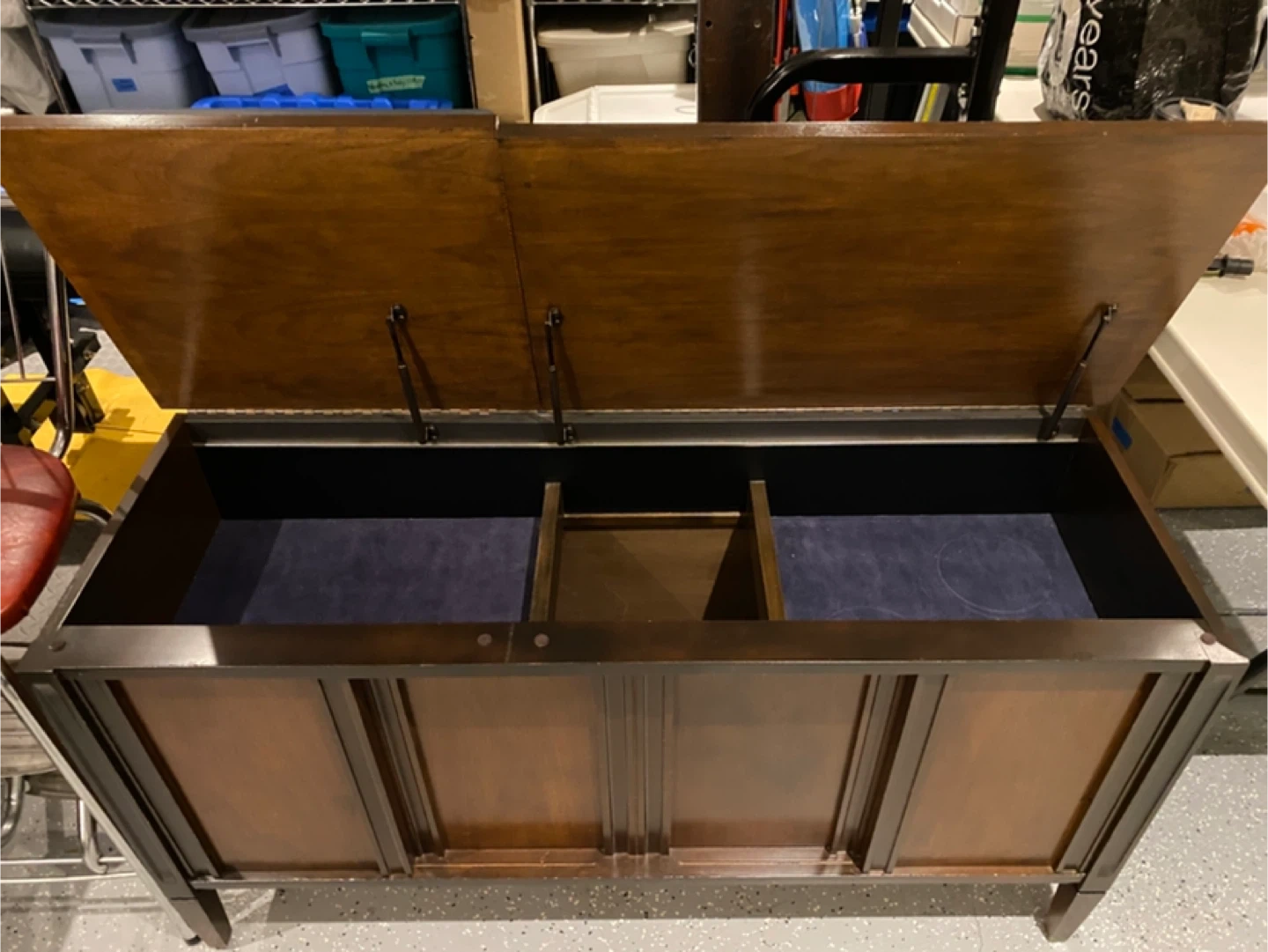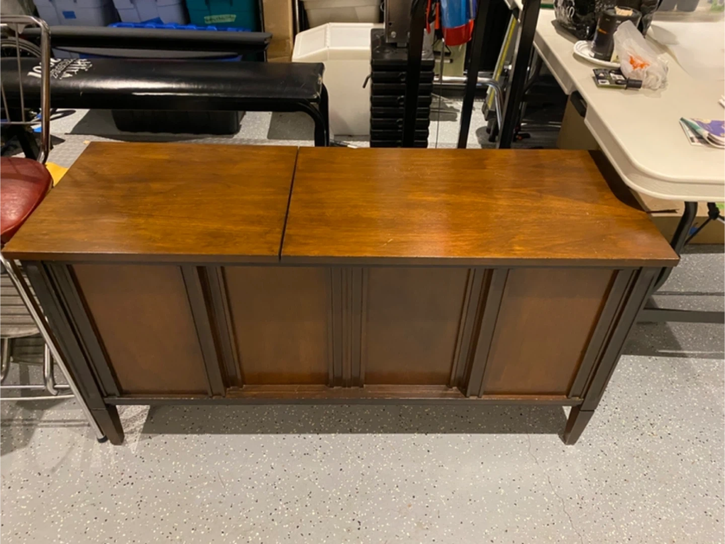Selling a wooden storage trunk that can also be used as a coffee table. It's in good condition and has a lot of storage space inside. Perfect for blankets, toys, or anything else you need to keep out of sight