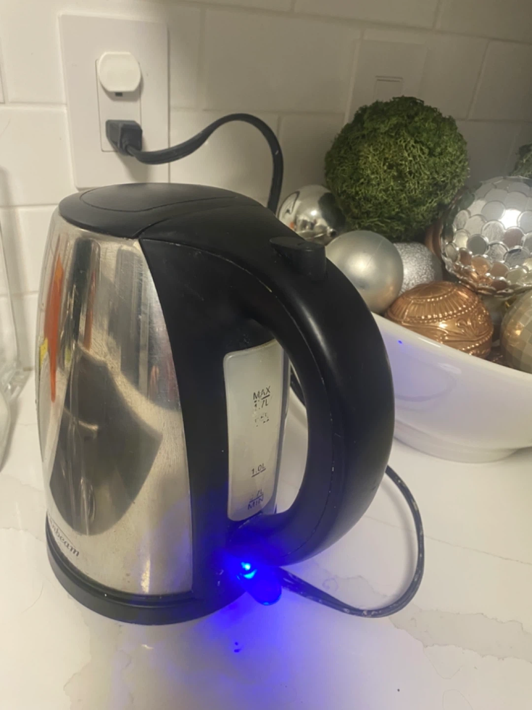 Selling a used Sunbeam electric kettle. It has a stainless steel finish with a black handle and top.works great! It can hold up to 1.7L of water.