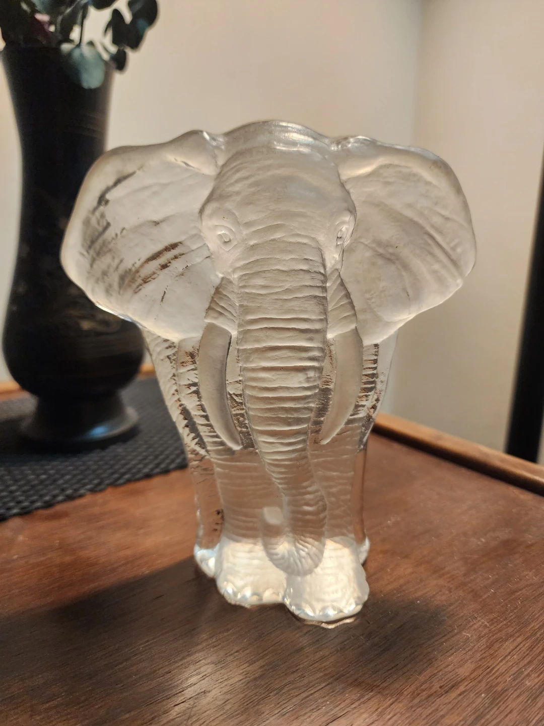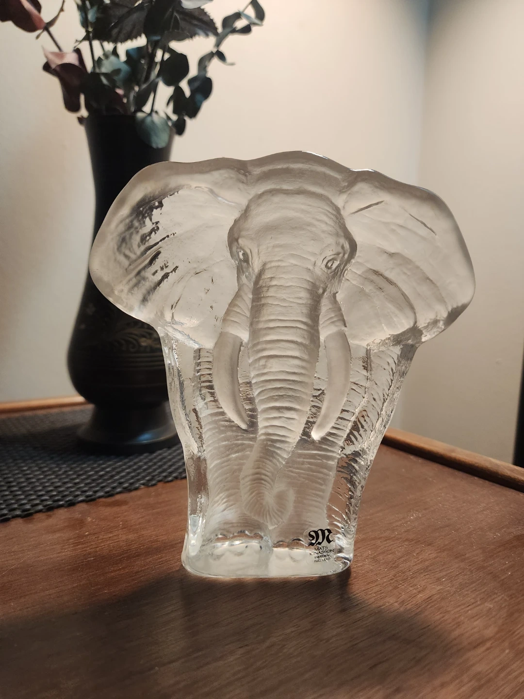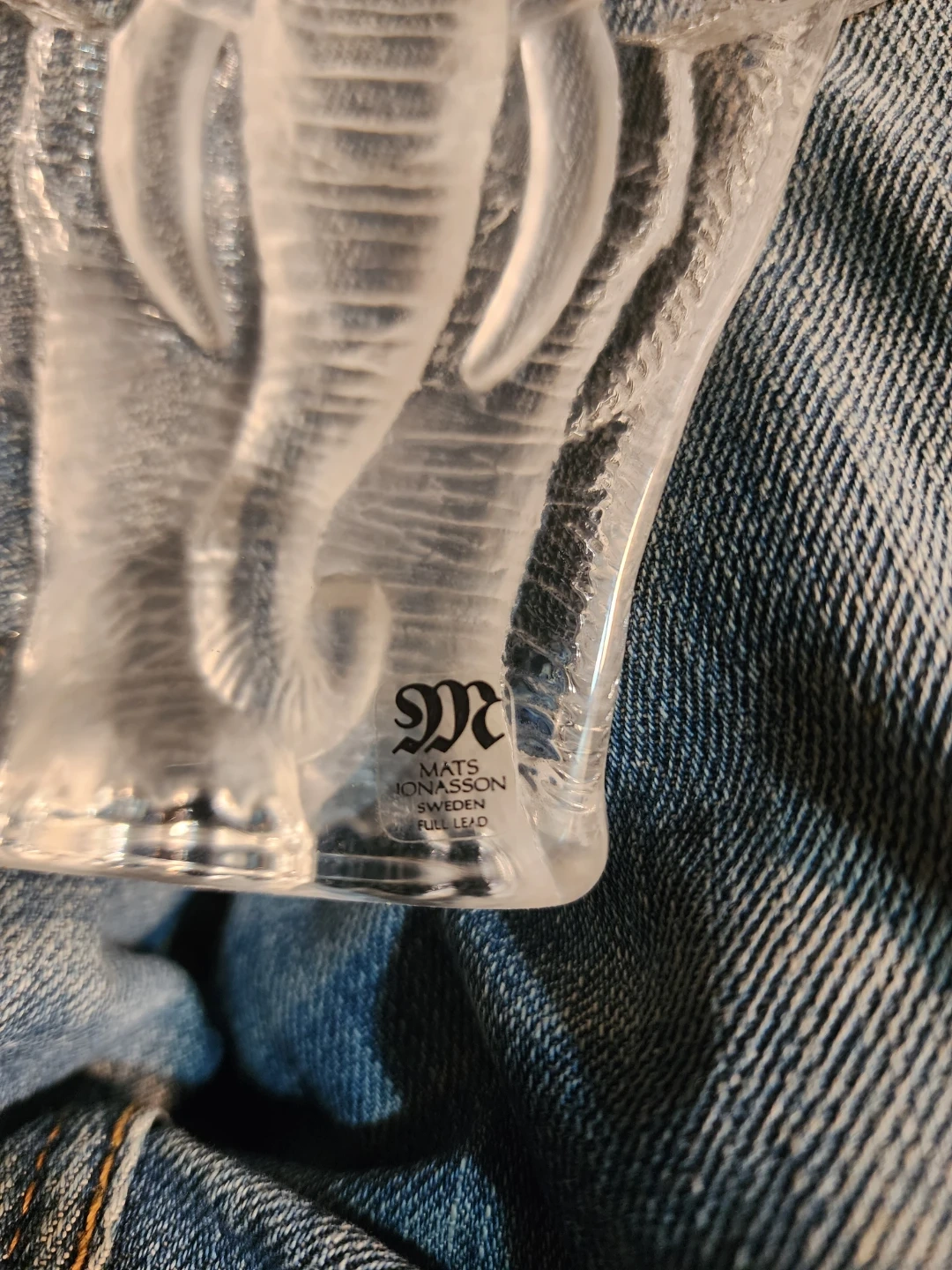This is a beautiful Mats Jonasson Sweden full lead crystal elephant sculpture. It's a lovely piece to add to any collection or as a standalone decorative item. The craftsmanship is exquisite, and the crystal is clear and sparkling!