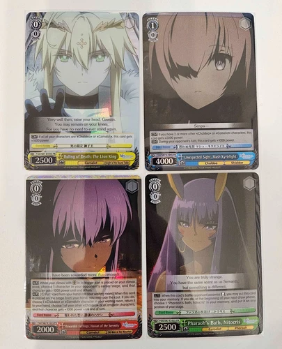 Includes all 4 Fate/Grand Order THE MOVIE Divine Realm of the Round Table: Camelot Tournament Store Assist PR promo cards. All are in NM condition, pulled and sleeved straight from packs.