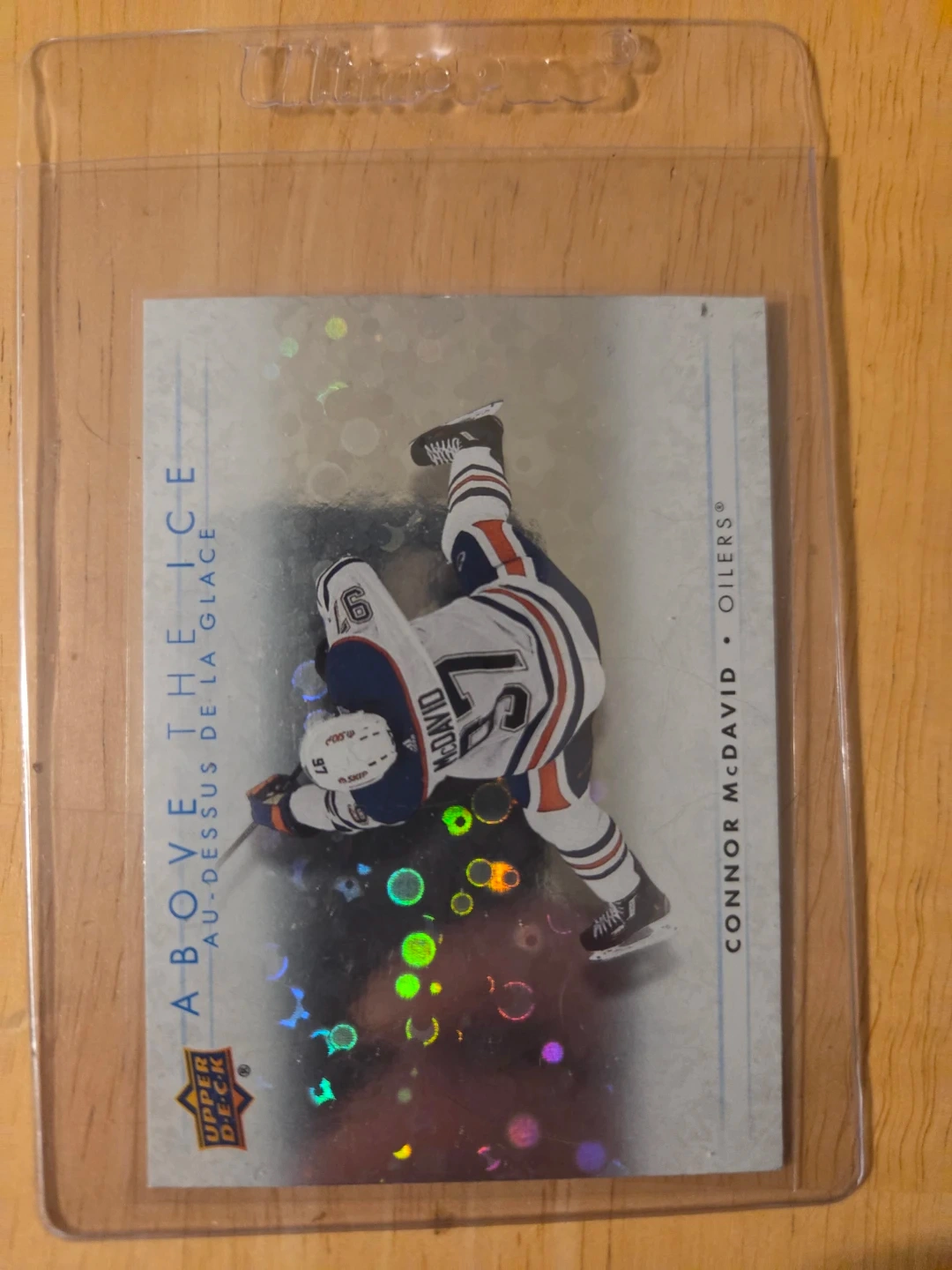 Selling a Connor McDavid Upper Deck hockey card. It's from the "Above the Ice / Au-Dessus de la Glace" series and features McDavid in his Oilers jersey. Great for any hockey card collector!