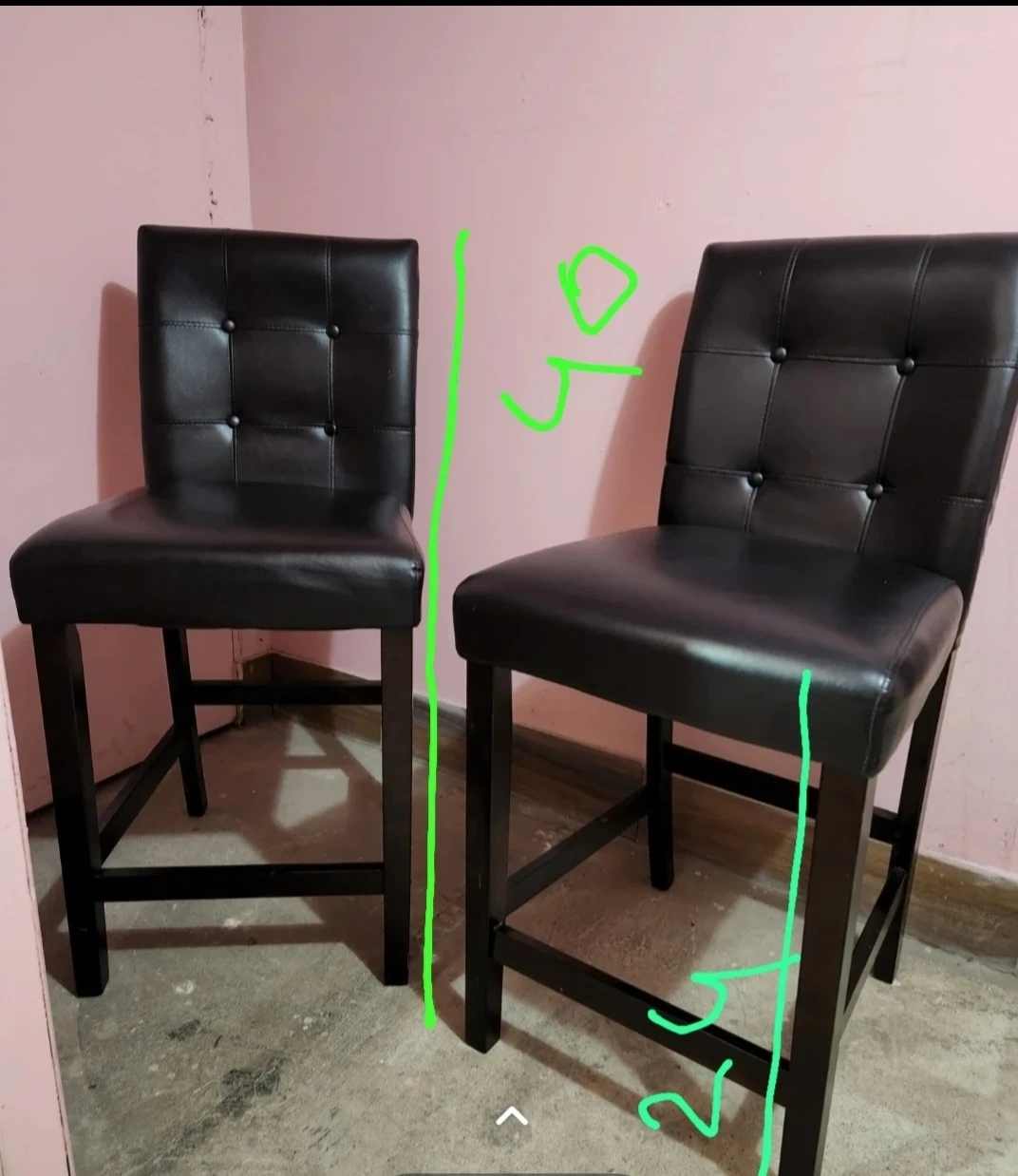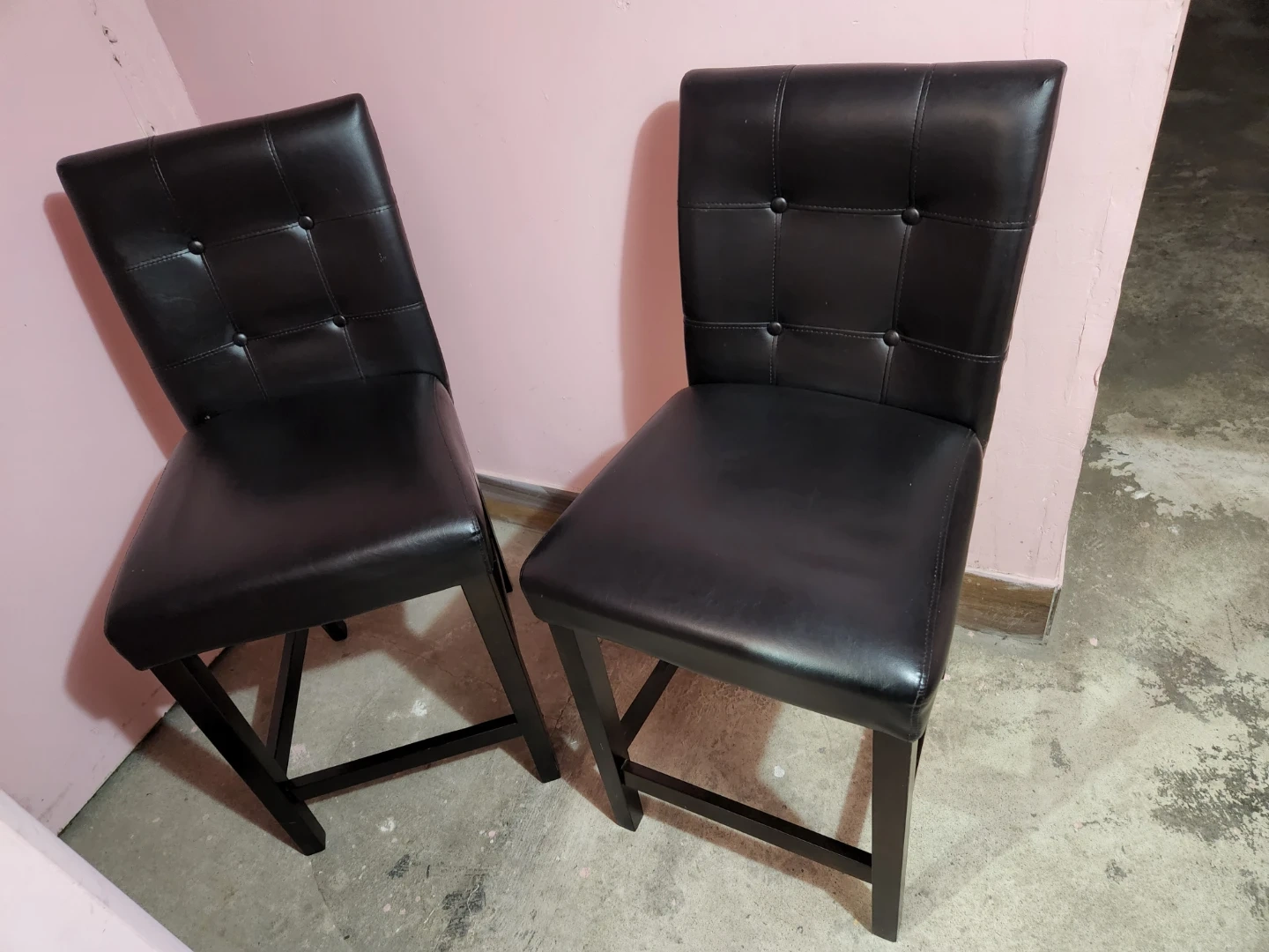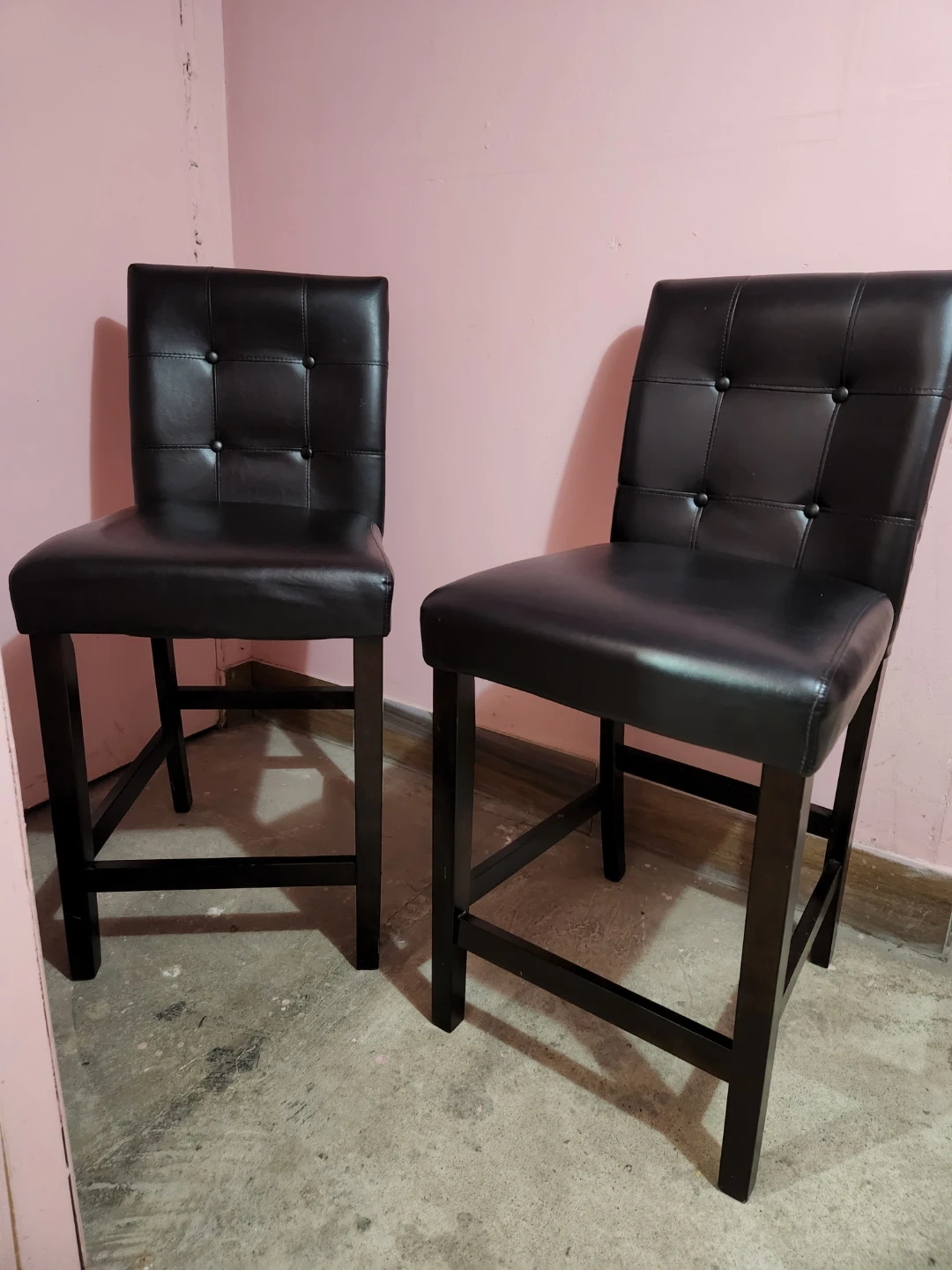 Selling a set of two stylish black bar stools. They're in great condition and would look great in any kitchen or bar area. The stools feature a comfortable padded seat and a sturdy wooden frame leather on..pet free smoke free.pick up or delivery can be depend on location.cash only