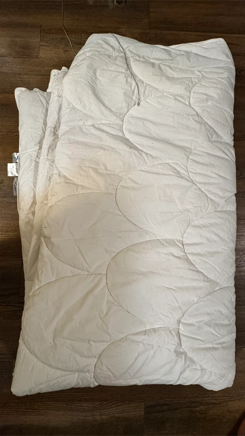 Selling a Maholi quilted mattress pad in white. It's in great condition and ready to keep your mattress comfy and protected! 100% cotton。