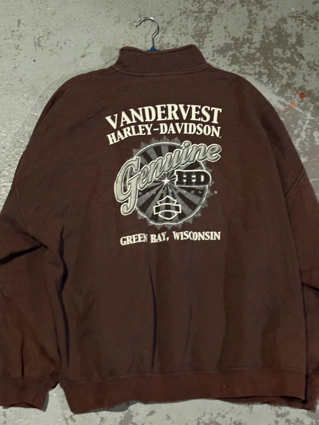 Selling a Harley-Davidson Vandervest quarter-zip sweatshirt. It's a cozy piece with the Harley-Davidson logo and design on the back. Perfect for any Harley enthusiast!