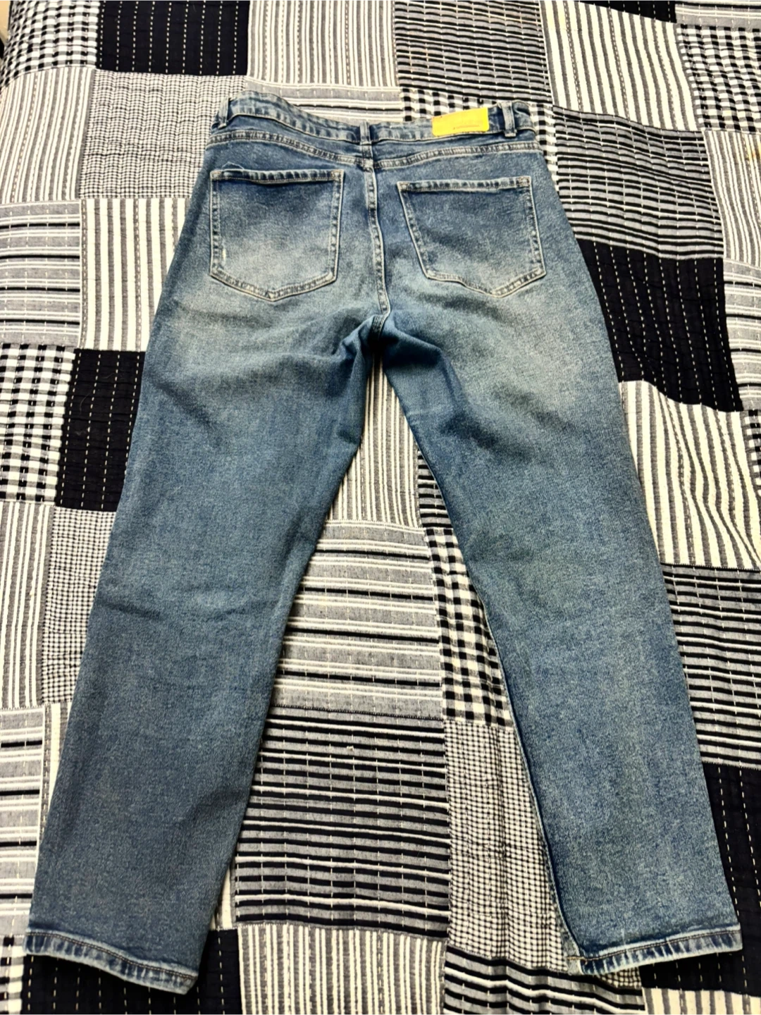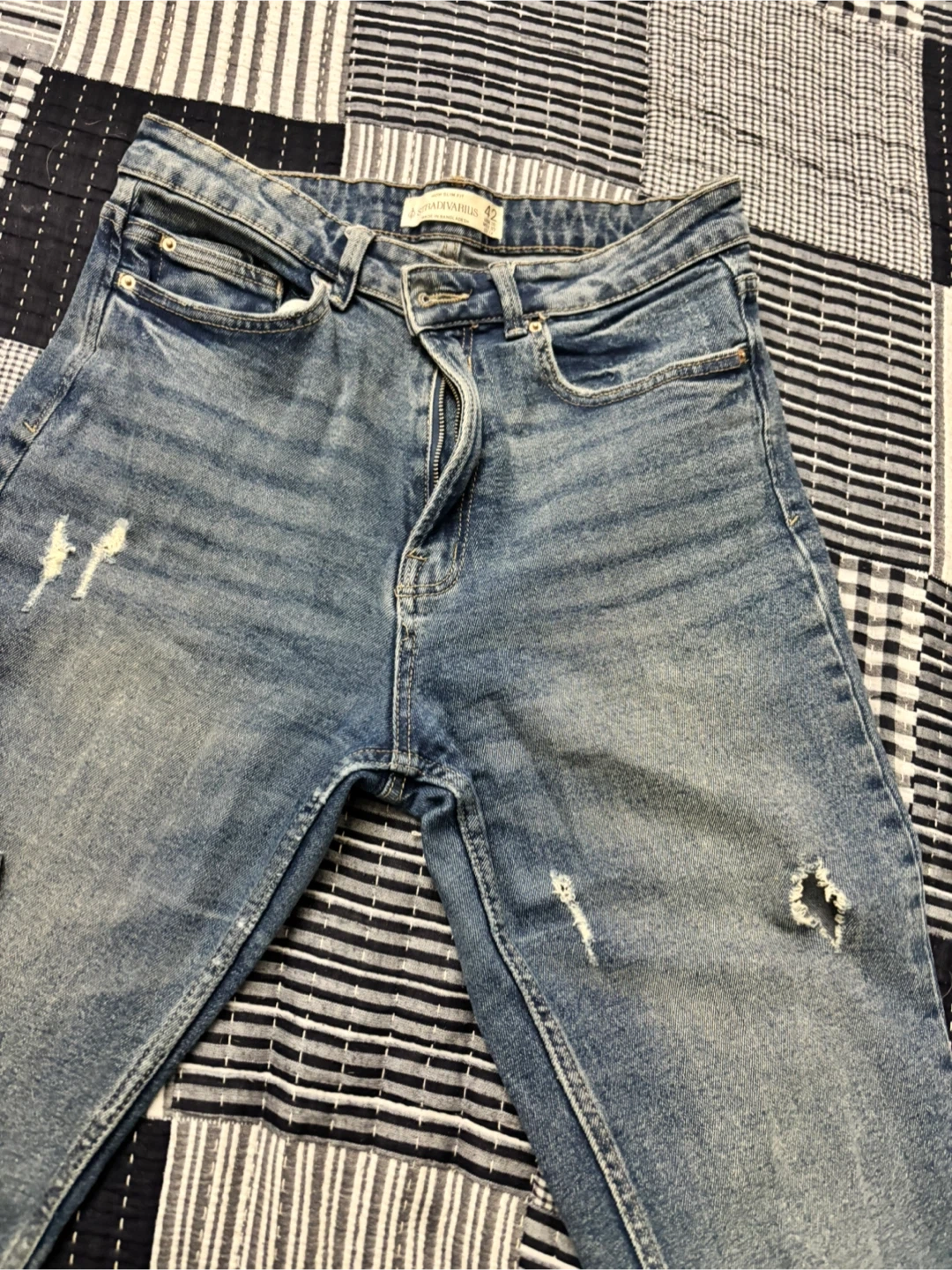 Selling a pair of Stradivarius jeans with a stylish distressed look! They're in good condition and ready for a new home. Perfect for casual outings or adding a bit of edge to your everyday style