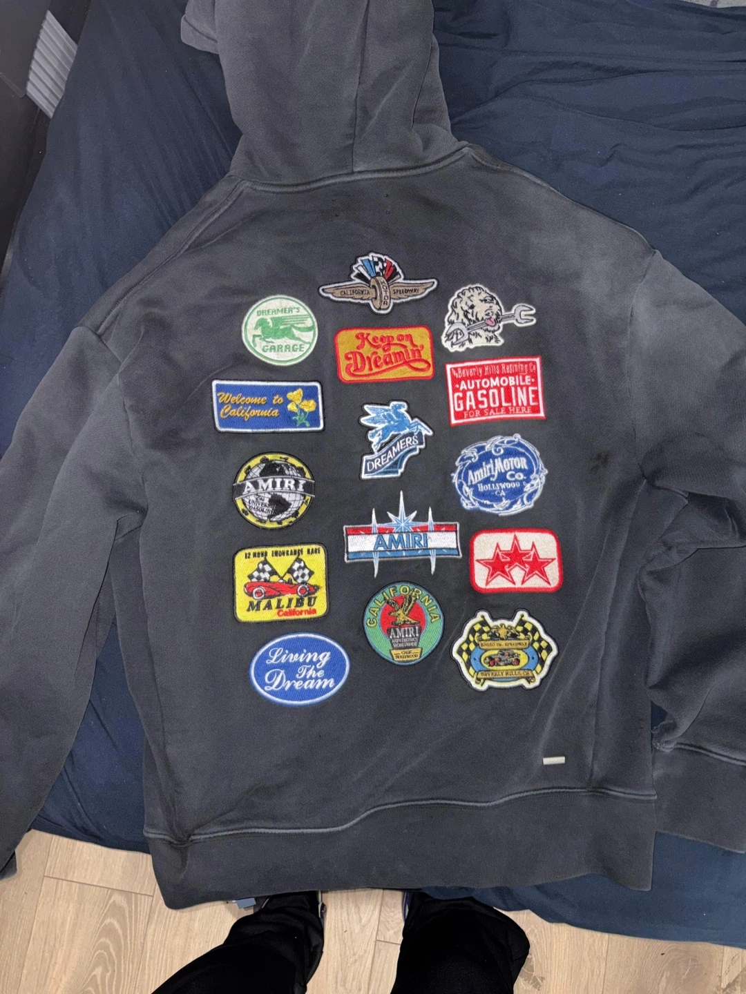 Selling an Amiri Station Patch Oversized Hoodie in size medium. It's a stylish hoodie with unique patch details. Perfect for adding a bit of flair to your wardrobe!