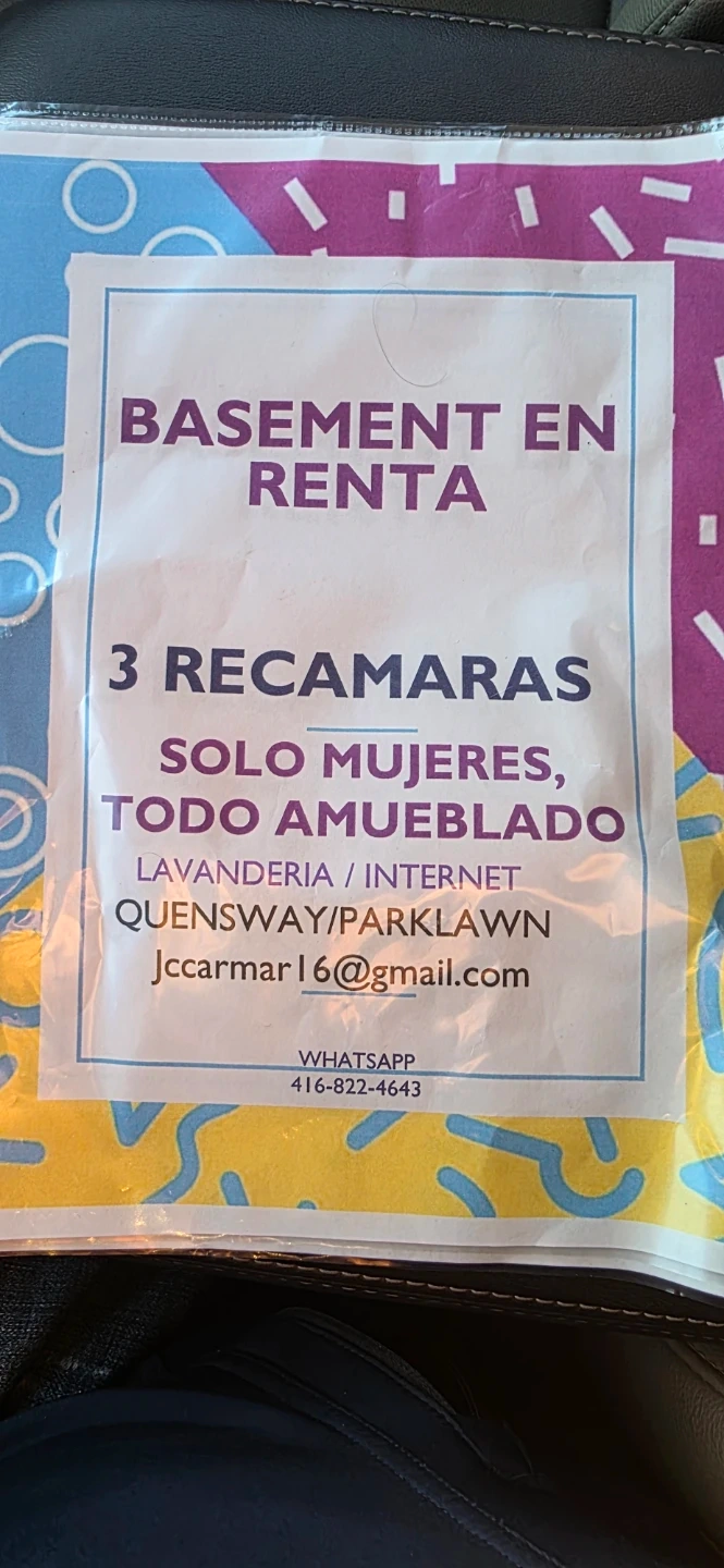 Basement en renta, 3 recamaras, solo mujeres, todo amueblado, lavanderia/internet Quensway/Parklawn.