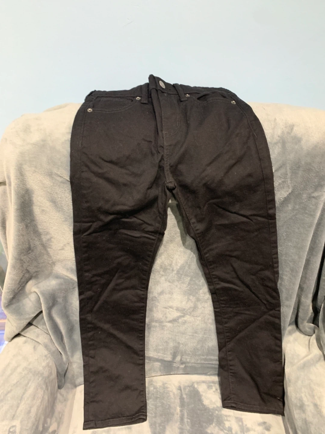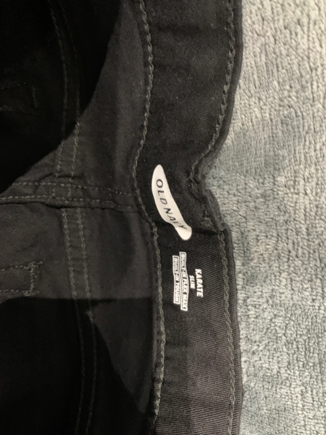 These are a pair of Old Navy Karate Slim jeans in black. They appear to be in good condition and ready for a new owner!