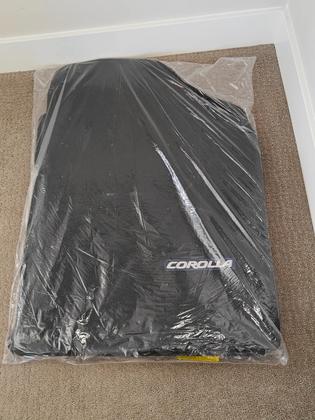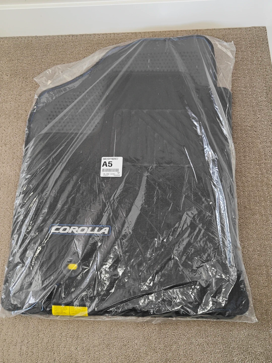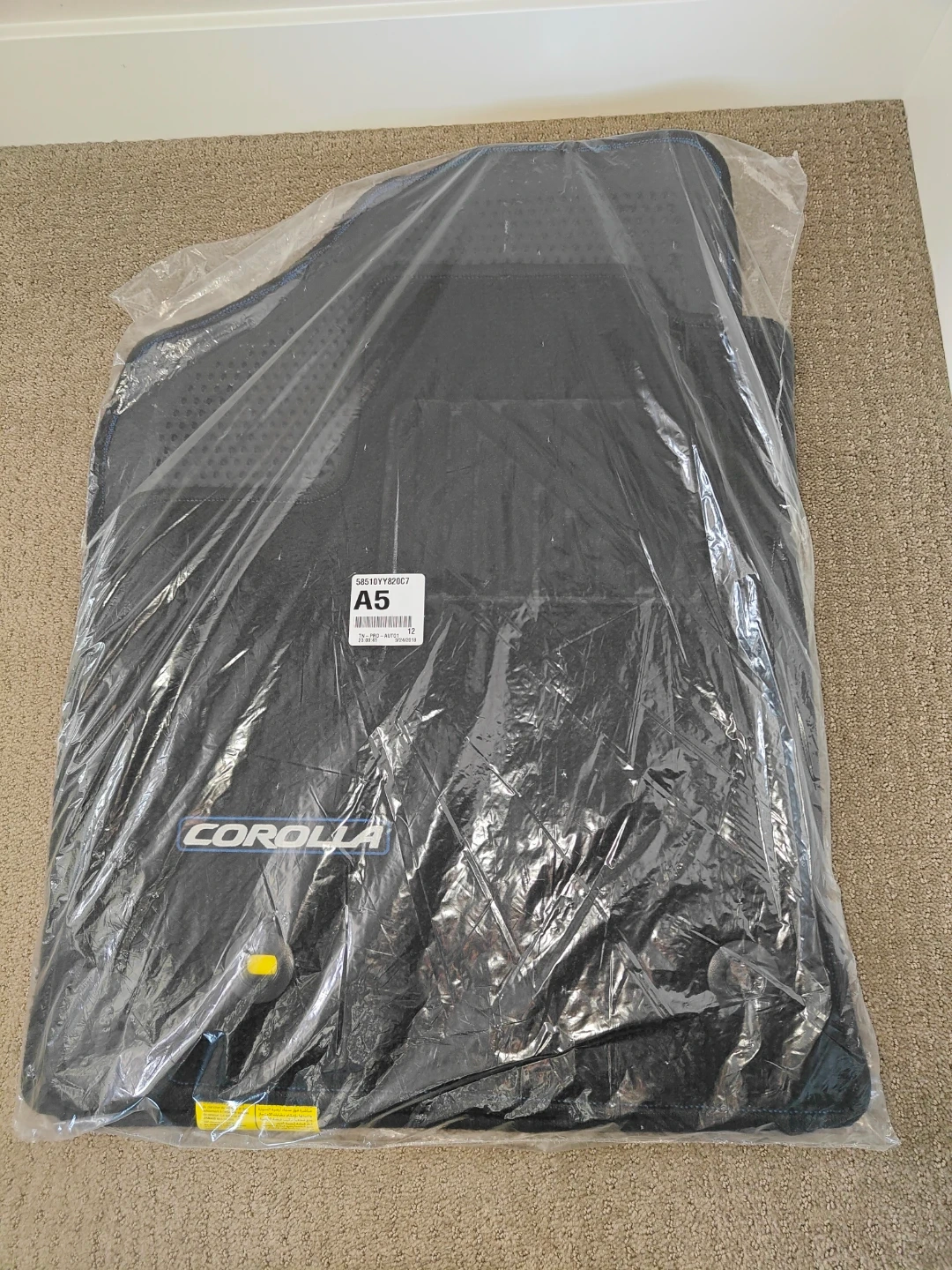 I am selling a set of OEM 2013-2019 Toyota Corolla - 4 Piece Summer Carpet Floor Car Mats Set in new condition. Includes 2 front and 2 rear mats. Still in original packaging. Originally from a 2019 Toyota Corolla SE Sedan 4 Door Automatic transmission.