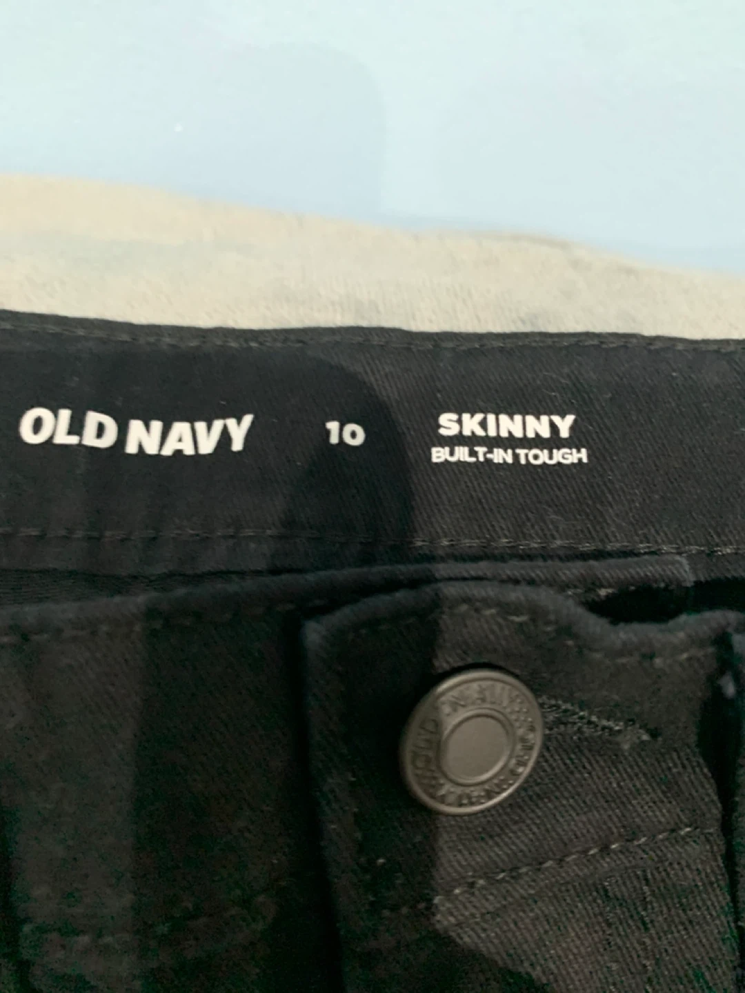 Selling a pair of Old Navy black skinny jeans in a size 10. They're in great shape and ready for a new wardrobe!