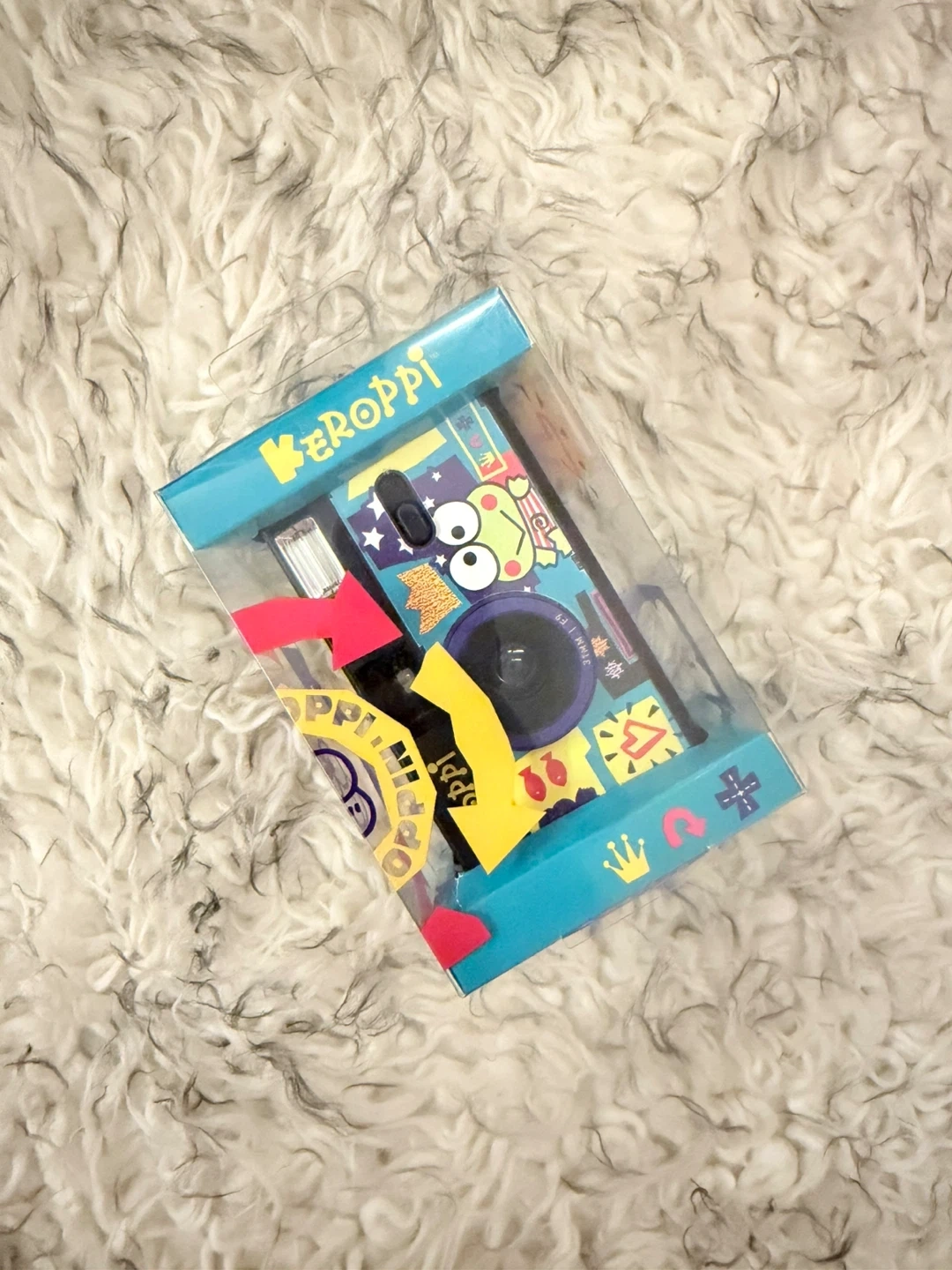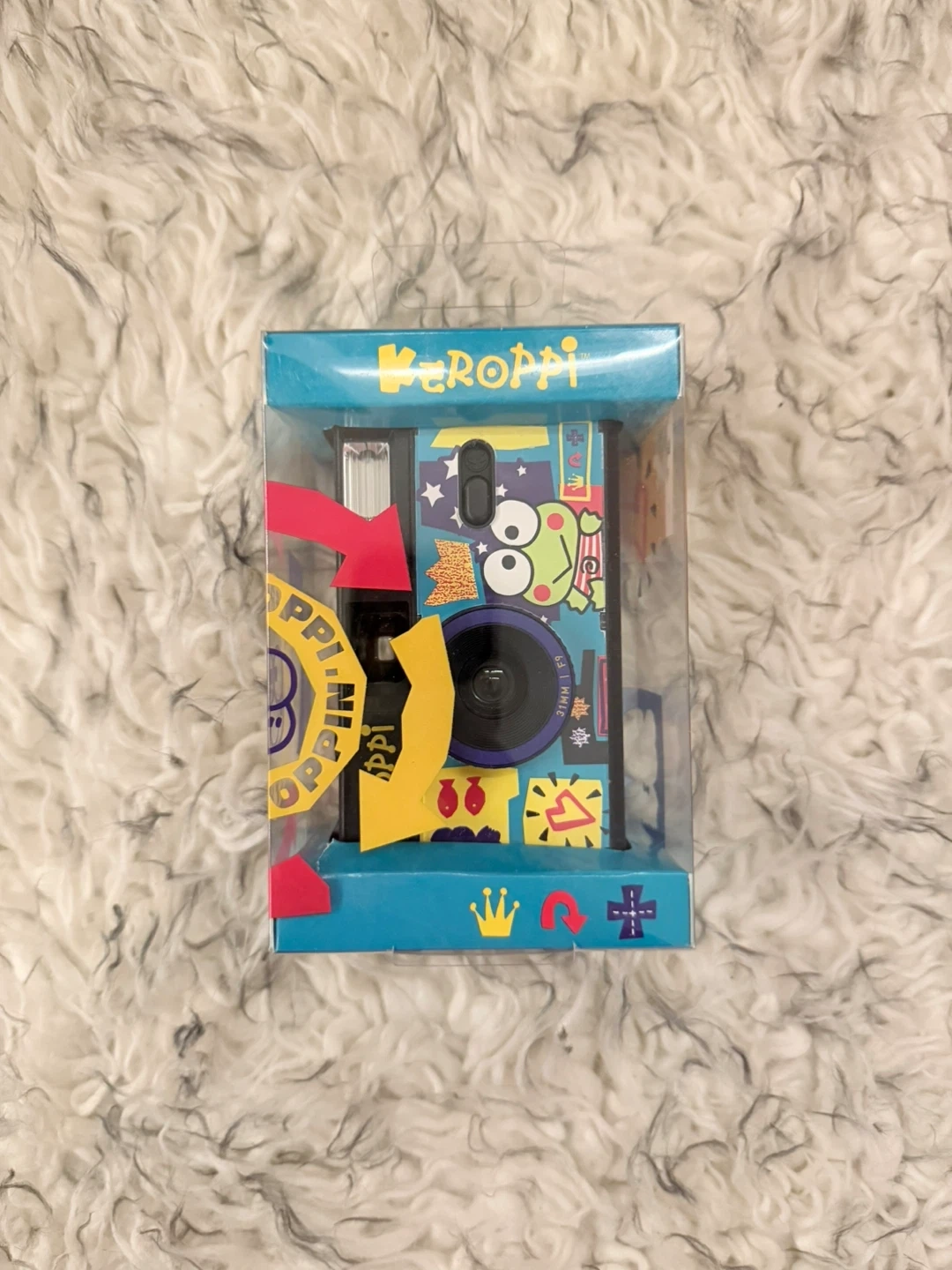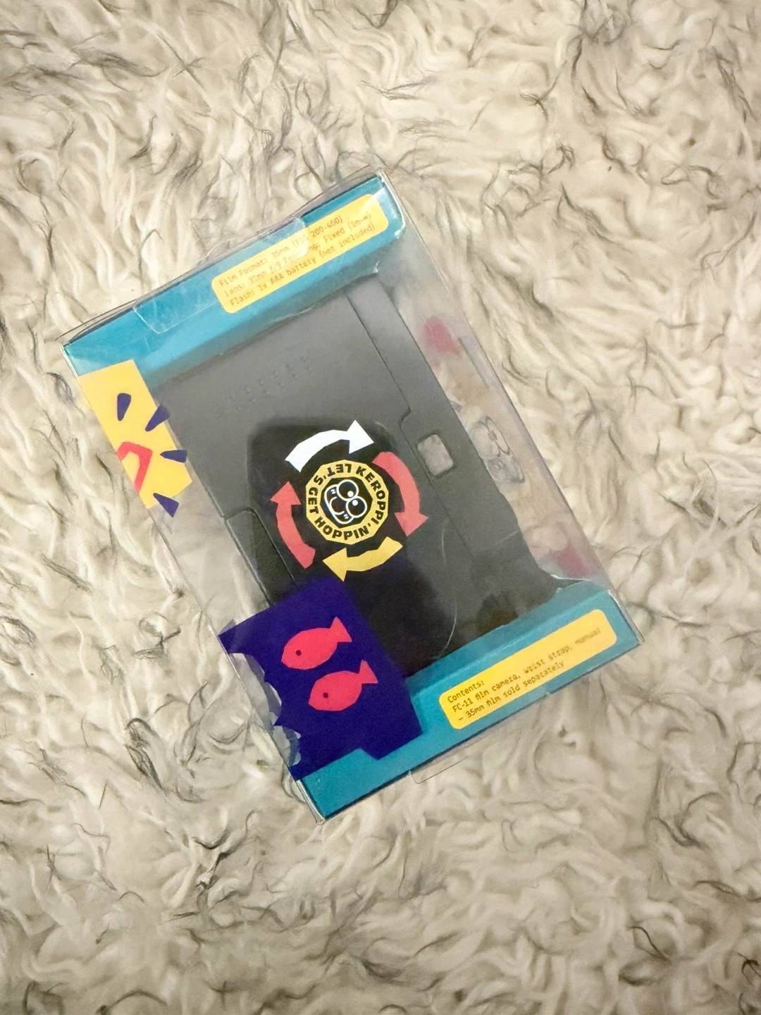 The Keroppi Let's Get Hoppin' FC-11 35mm Film Camera is a celebration of everyone's favorite adventurous frog, featuring vibrant 90s-inspired artwork with bold shapes and colors. With a fixed-focus lens and optional flash, this point-and-shoot 35mm camera distills film photography down to its most essential aspects — allowing you to focus on composition while creating a truly authentic photography experience for beginners and seasoned photographers alike. Just line up your shot, press the shutter and start documenting special memories on film.