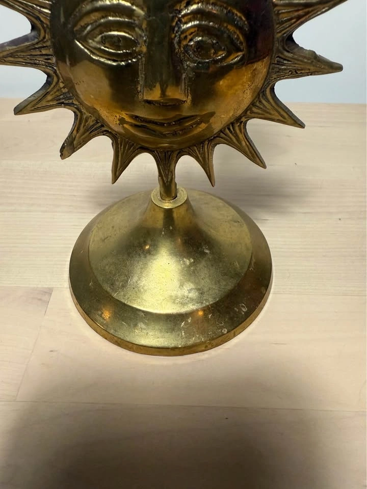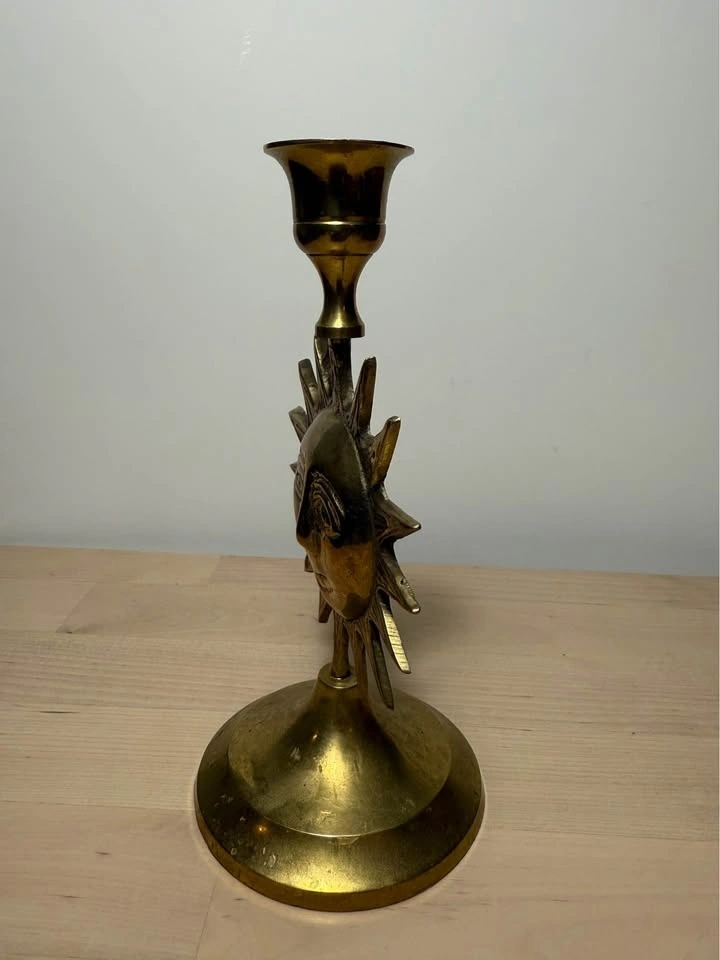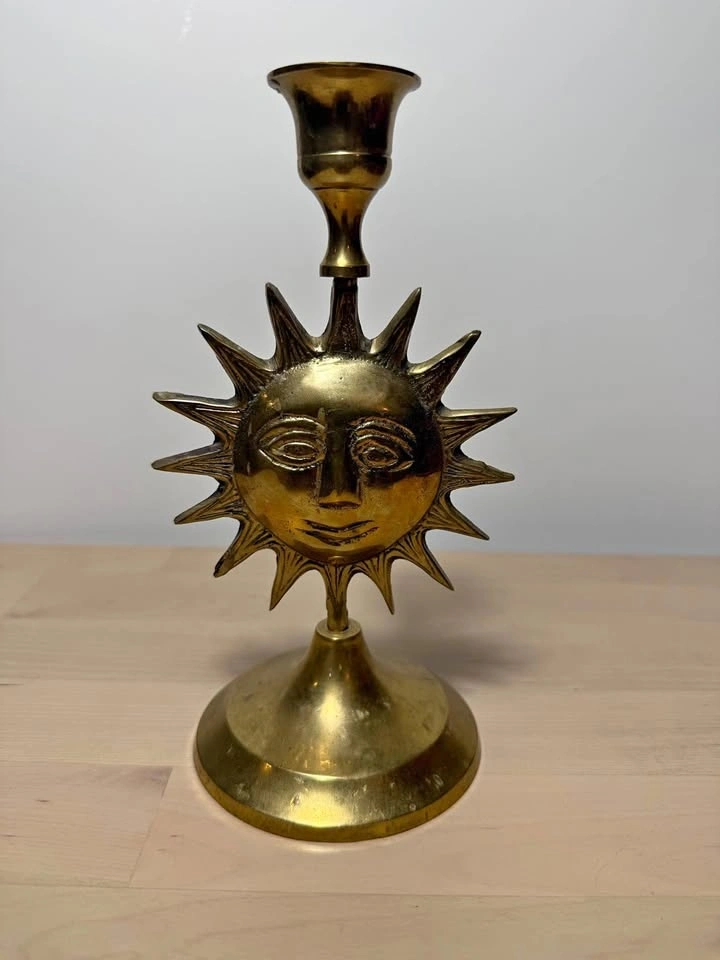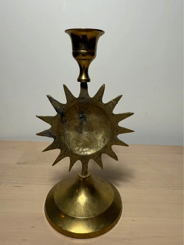 Vtg Brass Sun Candle Holder