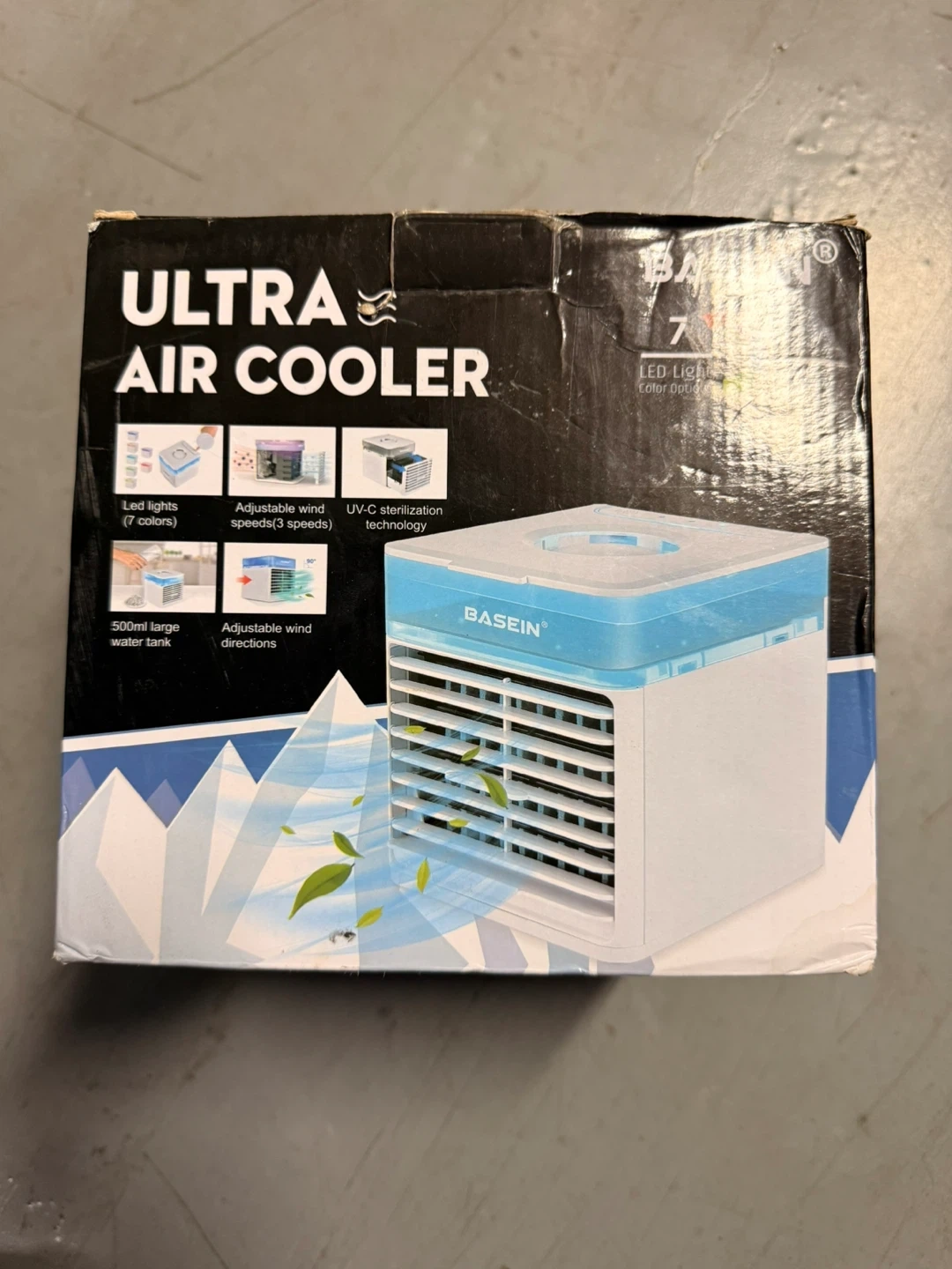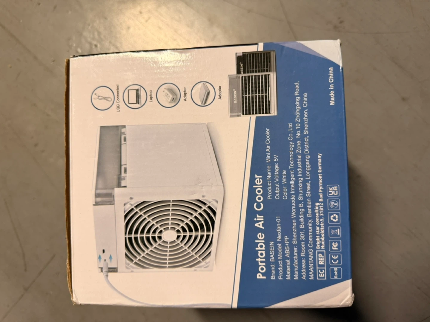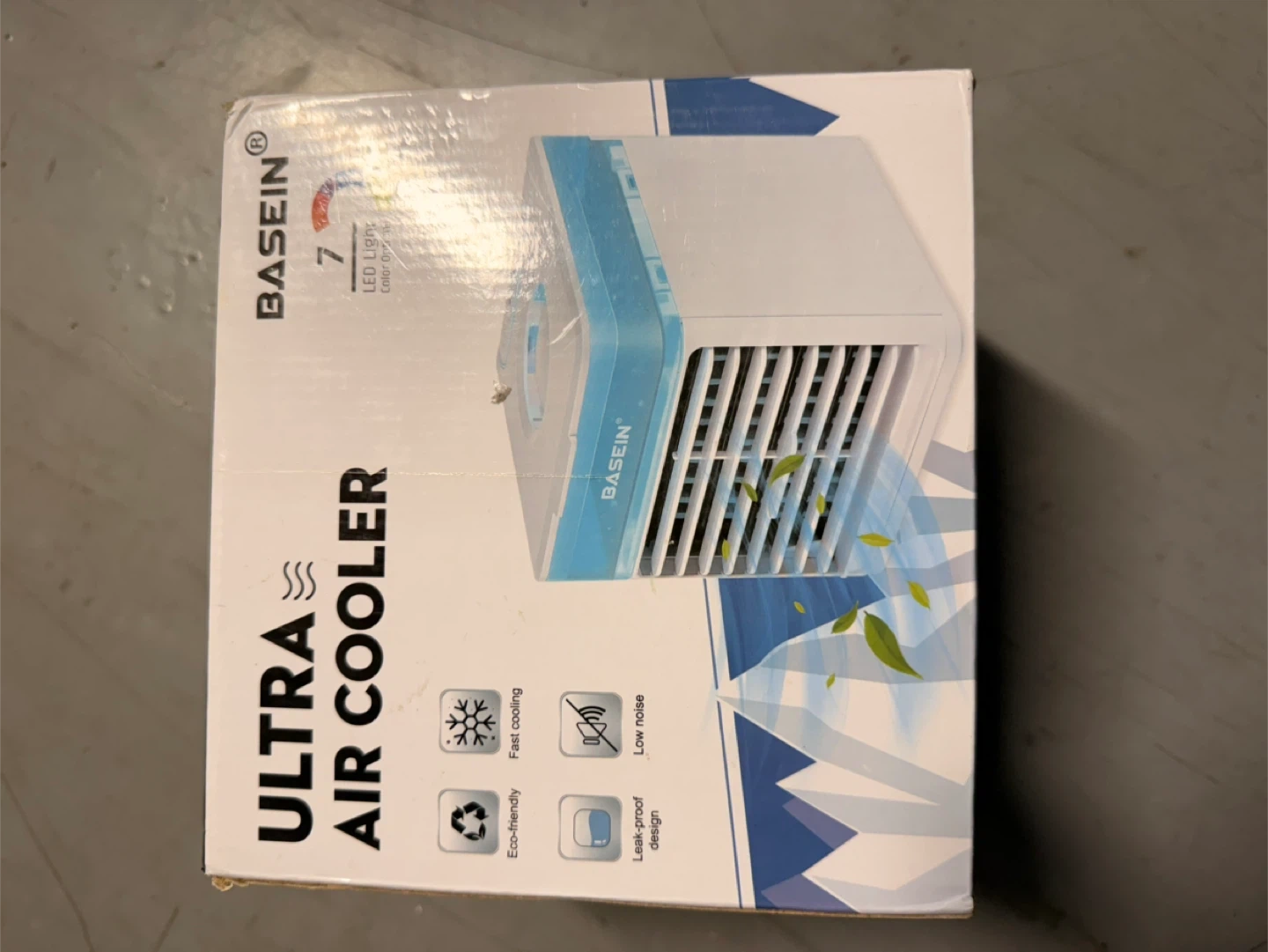 Selling a brand new BASEIN mini portable air cooler! It's still in its original box and has never been used. It features 7 LED light colours, adjustable wind speeds, and UV-C sterilization technology. It also has a 500ml large water tank and adjustable wind directions. Great for personal use to keep cool!