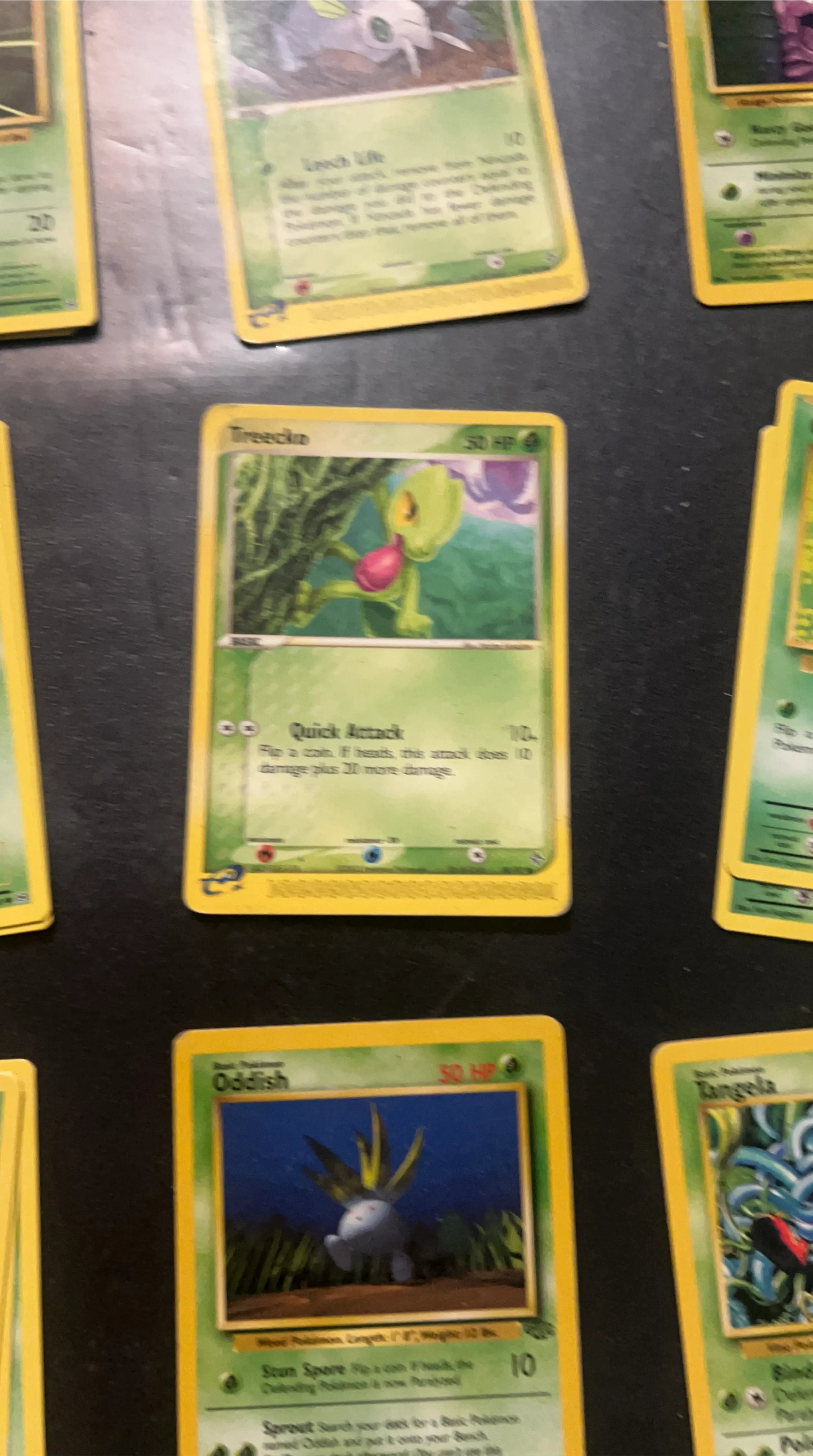 Selling a few Pokemon trading cards including Treecko, Oddish, and Tangela. They are in good condition and ready for a new trainer!
