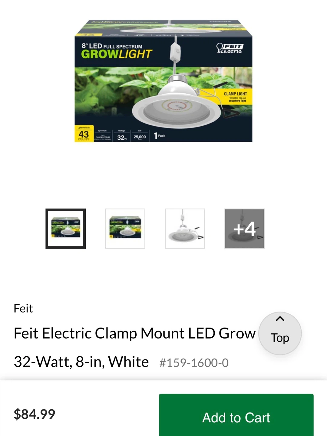 I'm selling a Feit Electric 8-inch LED full spectrum grow light. It's a clamp mount light, perfect for indoor plants.