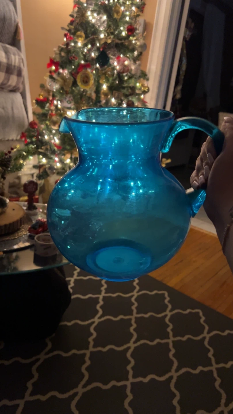 a lovely blue glass pitcher. It's in great condition and would be perfect for serving drinks at your next gathering. The colour is a vibrant turquoise blue. #freecycle