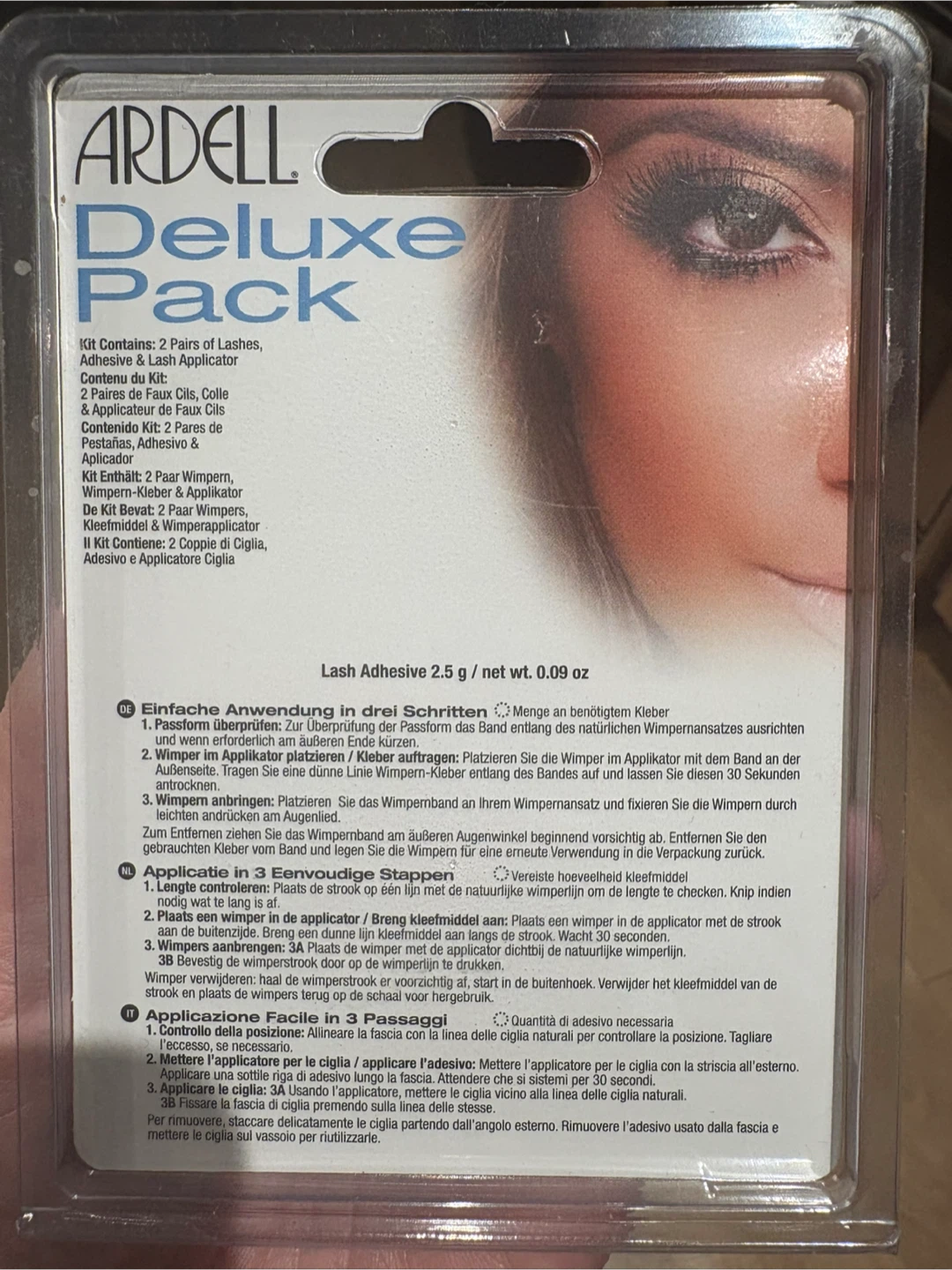 Selling a brand new Ardell Deluxe Pack, which includes two pairs of lashes, adhesive, and an applicator. It's a complete kit for achieving beautiful lashes at home! Comes in the original packaging.