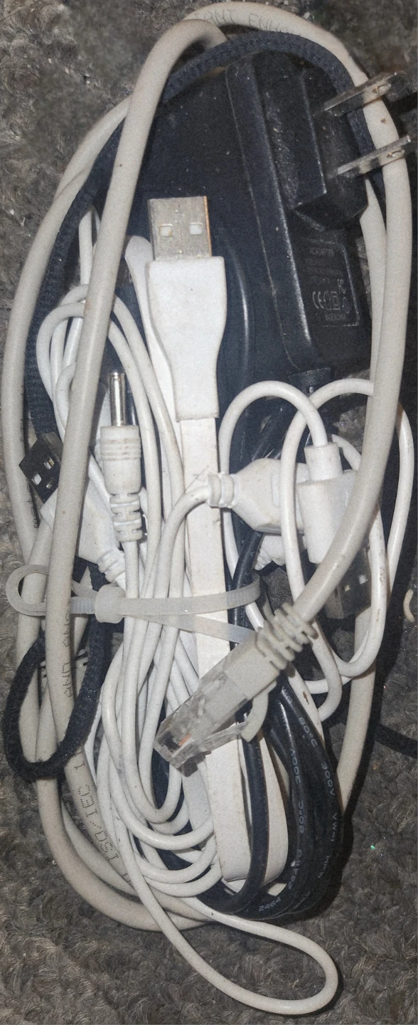 Selling a bundle of mixed cables and a power adapter. They're all tangled up but in usable condition. Pick up only unless near intersection of Oxford and Gammage Street.
