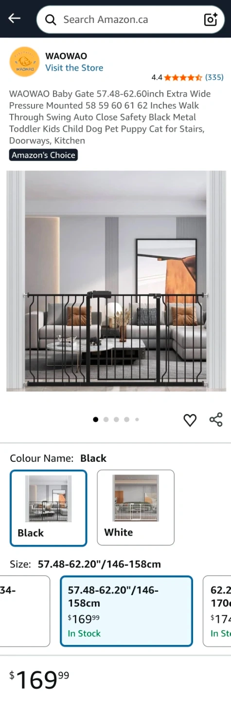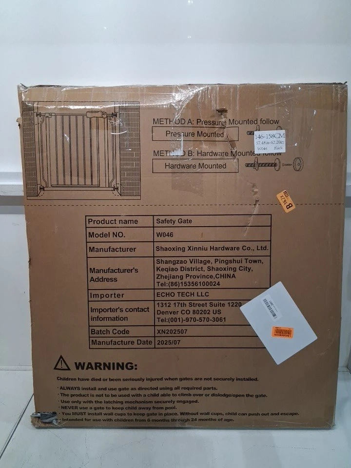 Keep your little one safe with this WAOWAO extra wide black baby gate! It's a sturdy, pressure-mounted gate that's easy to install and designed to fit openings from 57.48-62.20" (146-158cm). This has never been installed, it is, ready to provide peace of mind in your home.