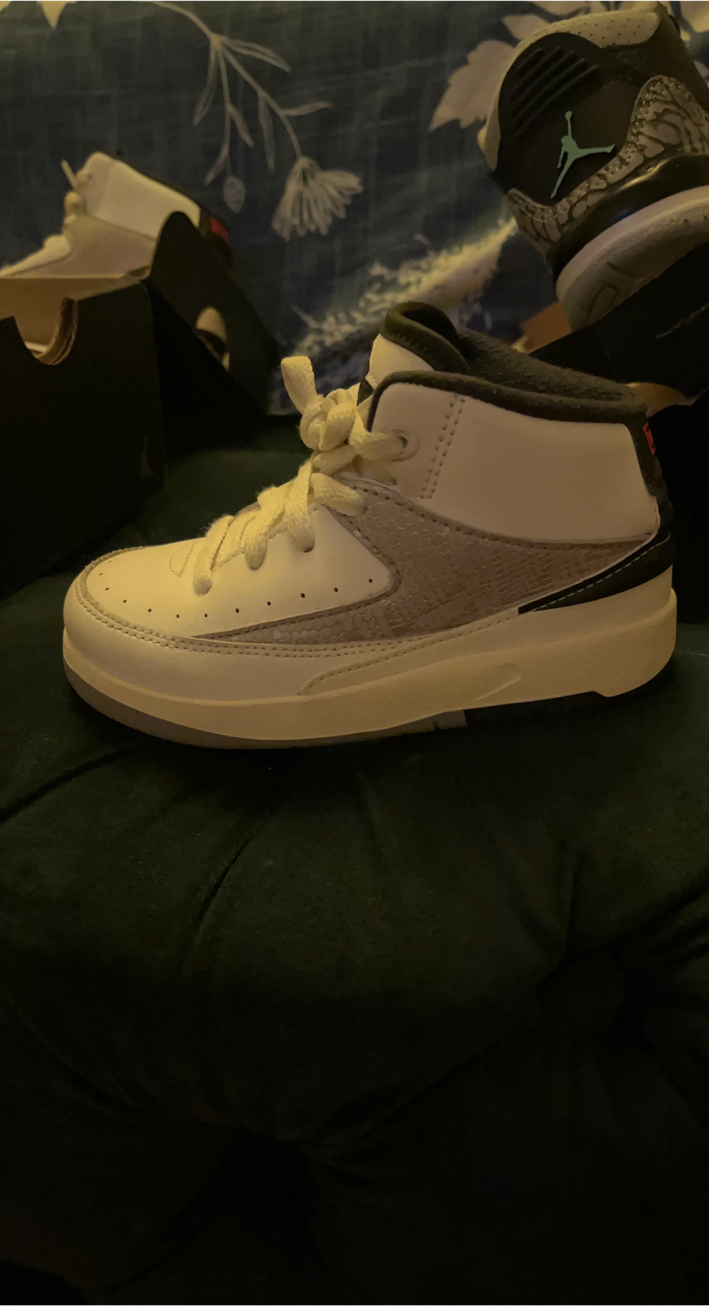 Selling a pair of toddler-sized Nike Air Jordan 2 Retro shoes in size 8 C. They are in great condition and ready for a new little owner!