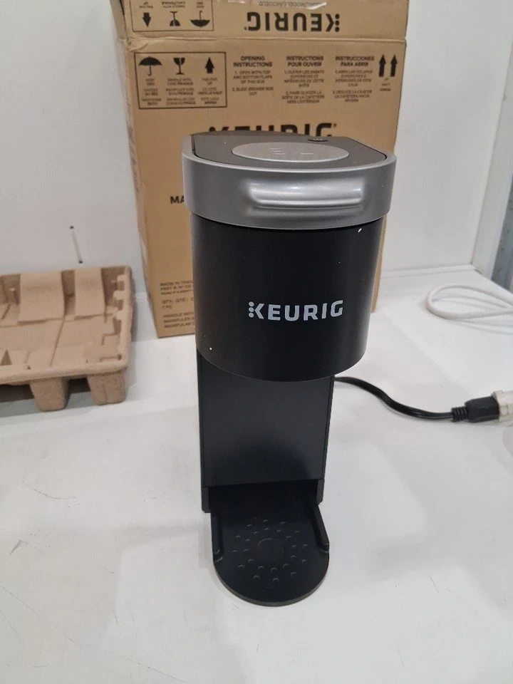 Brew the perfect cup every time with this Keurig K-Mini coffee maker! Compact and sleek in matte black, this single-serve coffee maker is ideal for small spaces. It features a 12-ounce reservoir and is compatible with K-Cup pods. This unit is in great condition!