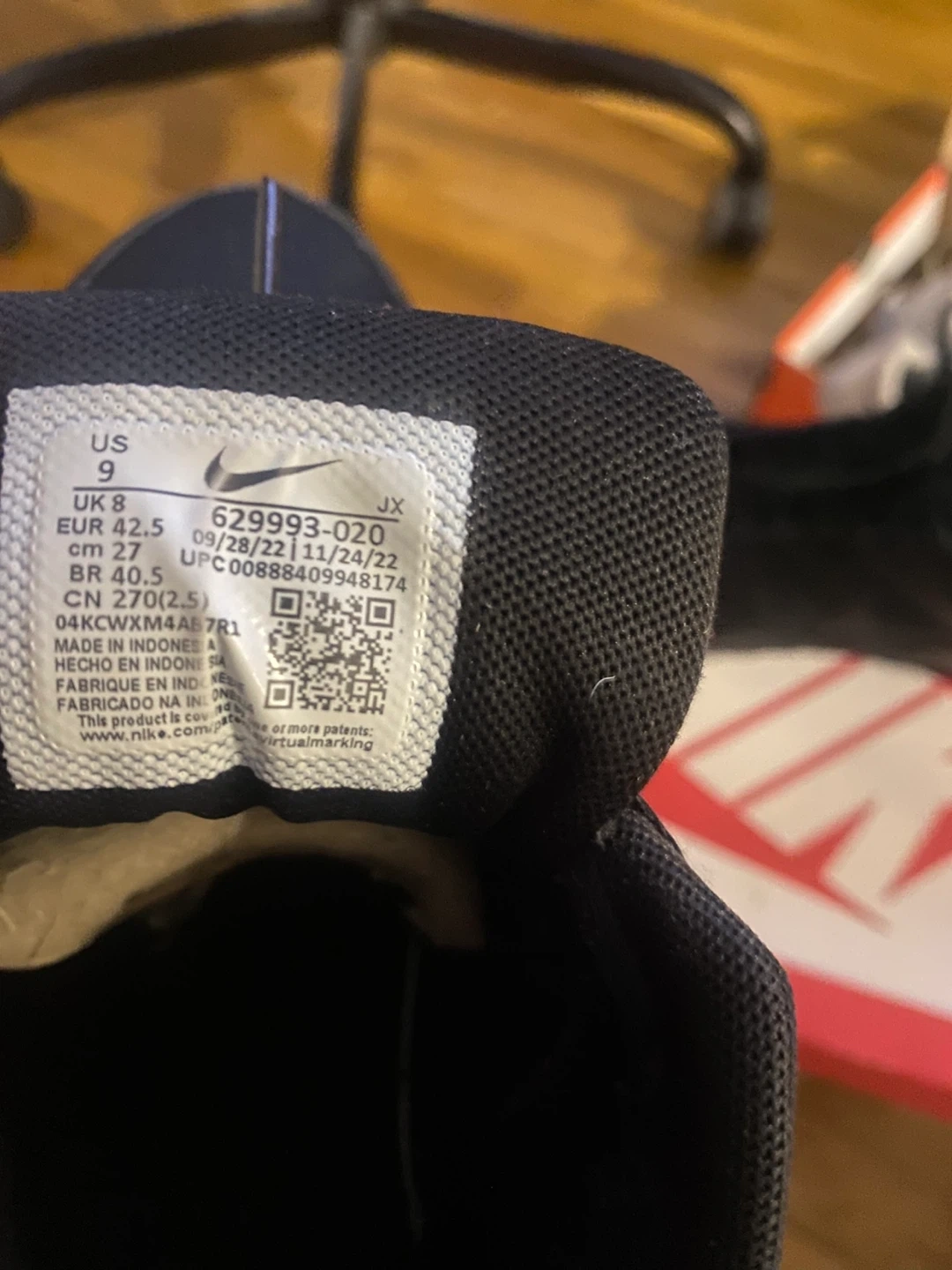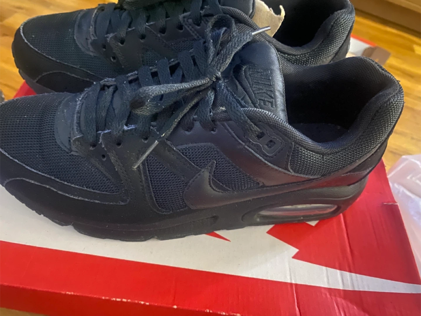 Selling a pair of Nike Air Max Command sneakers in black! They are a US size 9, EUR 42.5. The manufacturing date on the tag says 2022 September 28. They are in good condition and ready for a new owner!