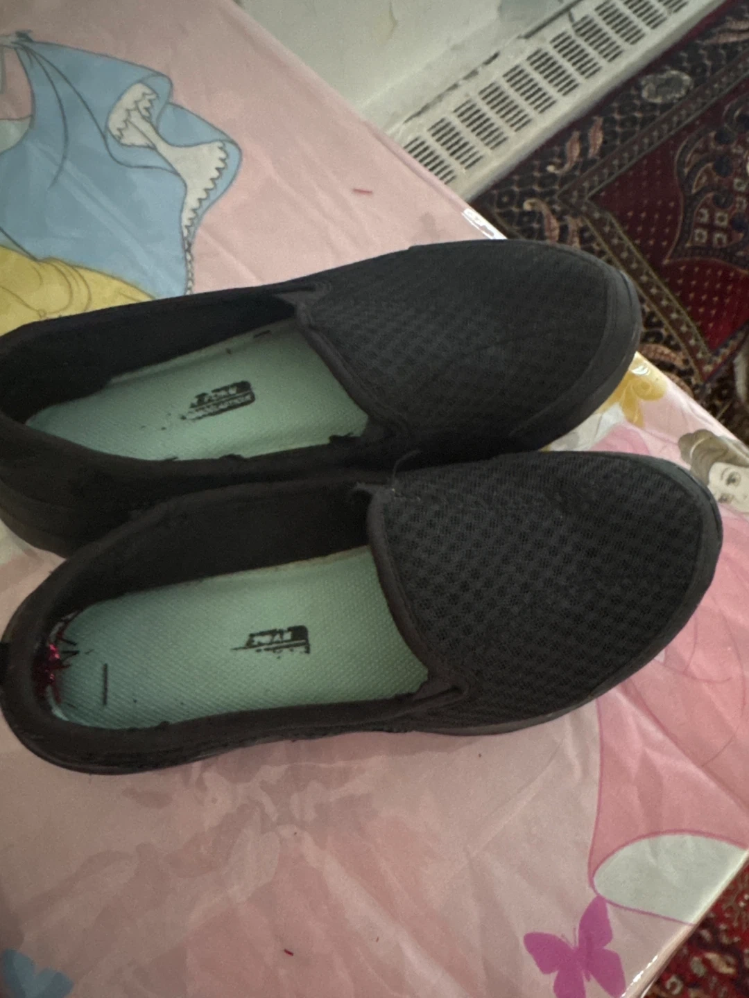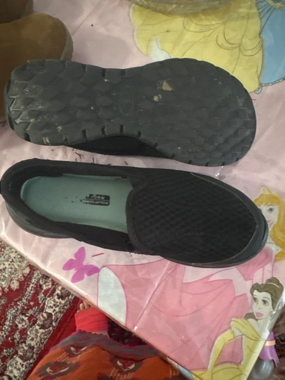 Selling a pair of Athletic Works black slip-on shoes in size 8. They're pre-owned but still have lots of life left! Perfect for casual wear or running errands. Please take a look at the photos to see the condition.