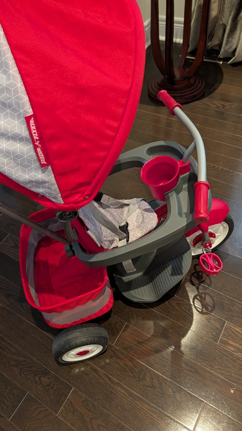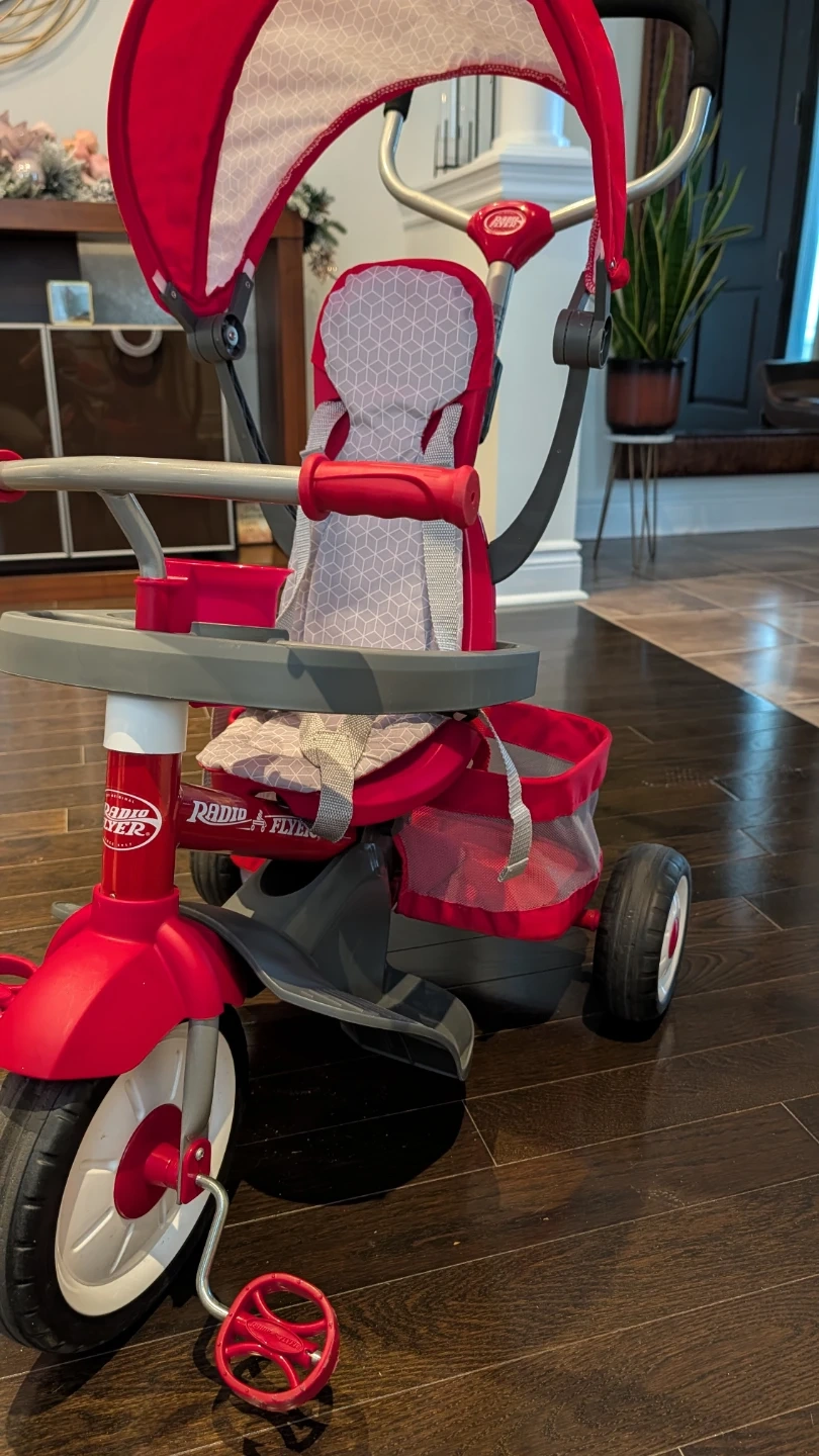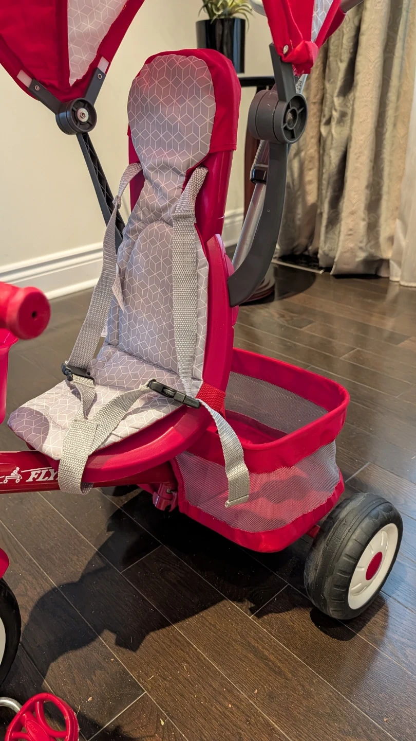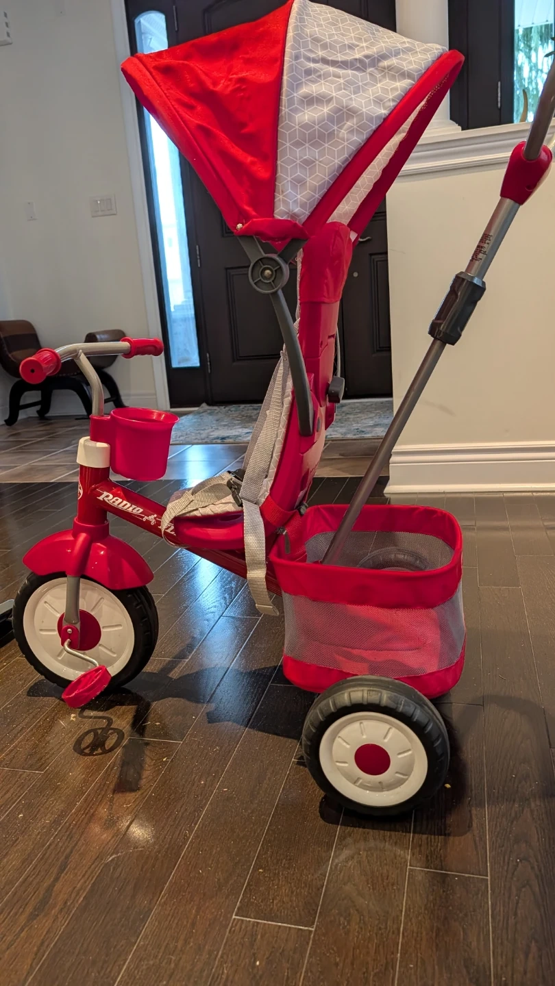 Selling a Radio Flyer Steer & Stroll Trike in red! It's in great condition and ready for a new little rider. This trike is perfect for toddlers learning to ride. It features a sturdy frame, comfortable seat, and parent steering handle. The trike also has a storage basket for toys and essentials