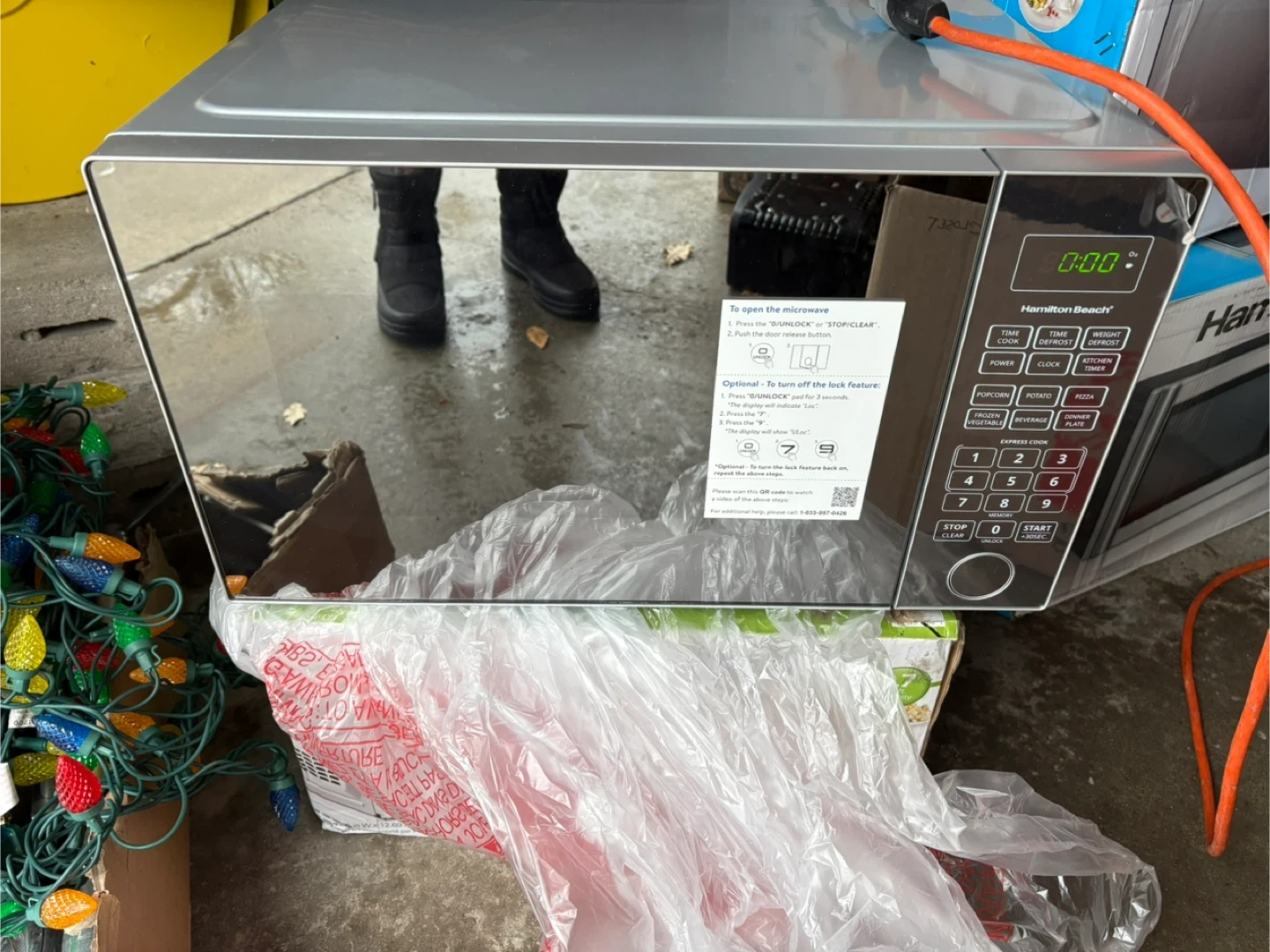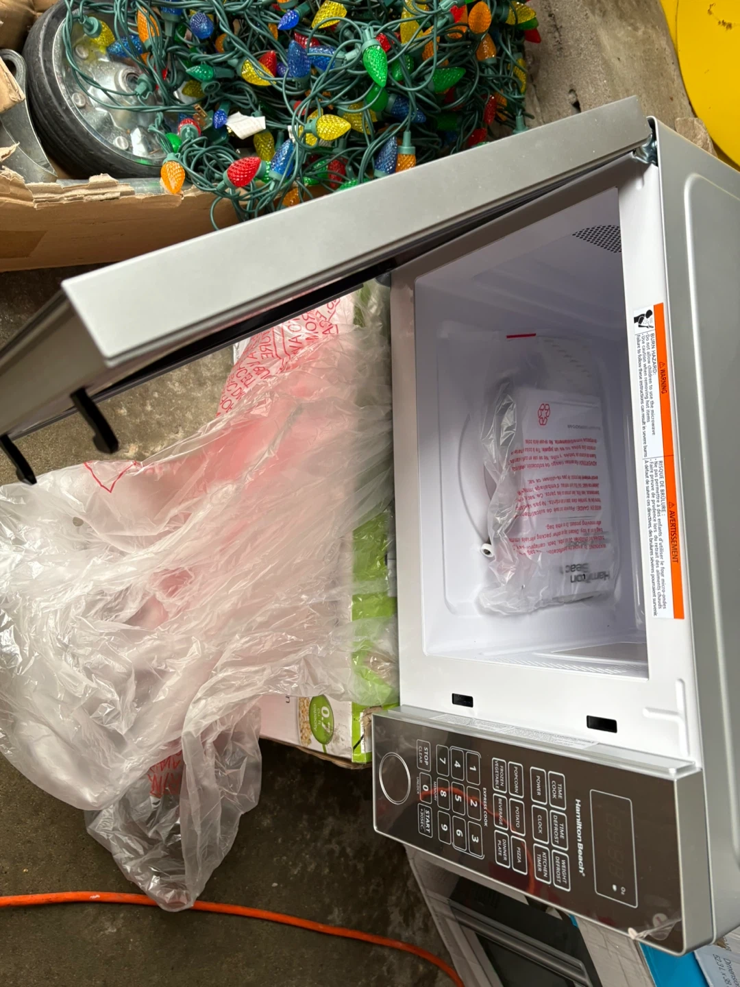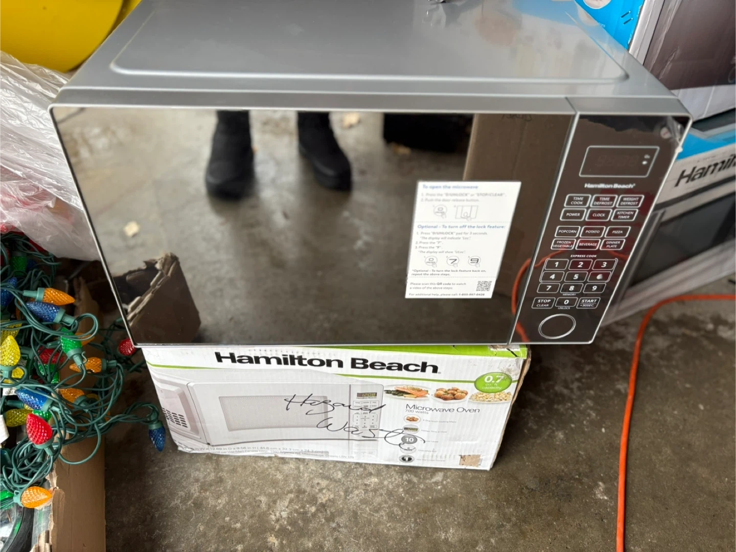 Selling a Hamilton Beach microwave it’s new , just open box .. their is a dent it’s shows in the picture..Still in the box and all original components are included