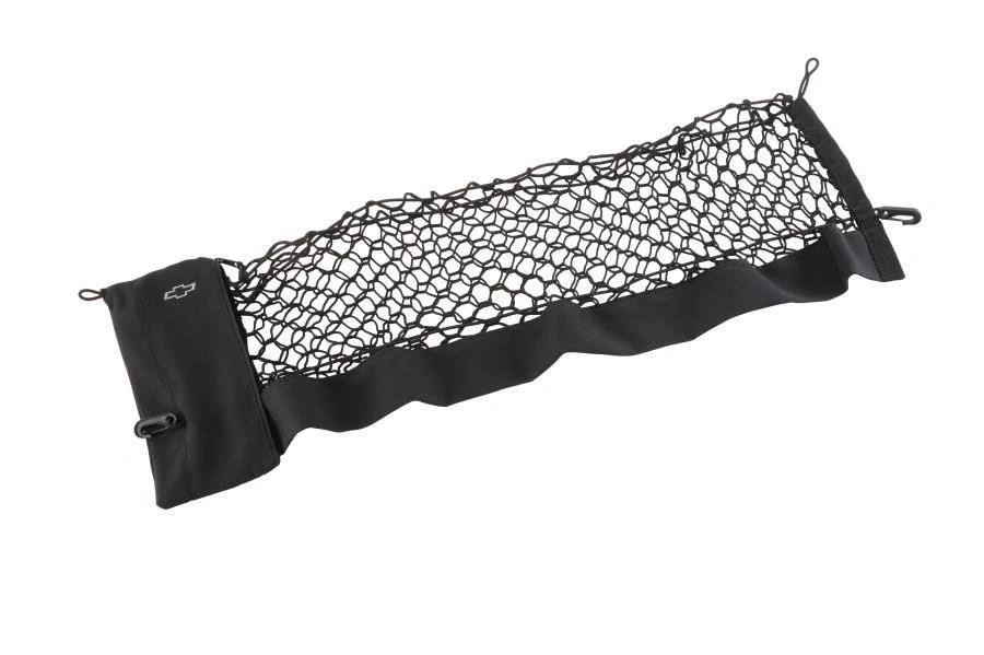 For 2021 and up Chevy Tahoe. Secure items of various shapes and sizes in the cargo area of your vehicle with this Chevrolet Accessories envelope-style Cargo Net. This useful cargo carrier attaches easily to the sides of the vehicle cargo area and helps prevent small items placed inside it from shifting while in transit. It can be conveniently stored in the integrated storage bag featuring the Bowtie logo when not in use.