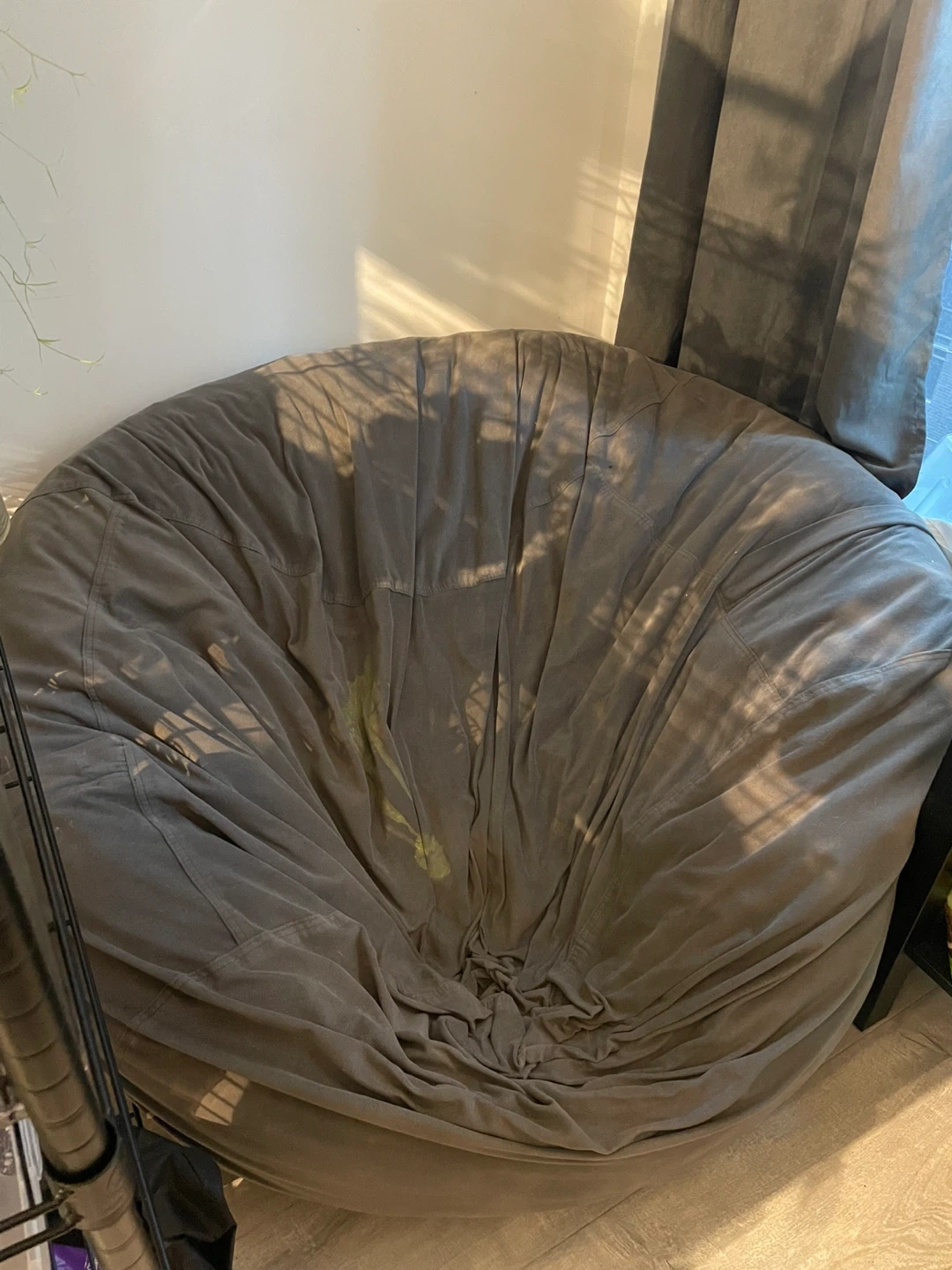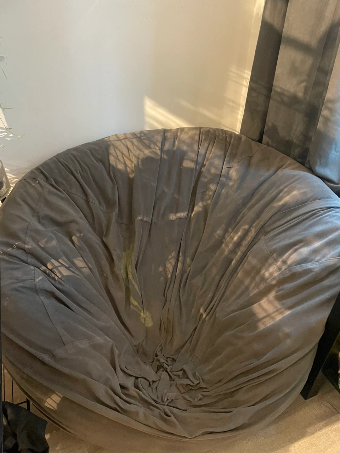 Selling a comfy grey Cordaroy bean bag chair. The material is soft and cozy, making it a great addition to any room.