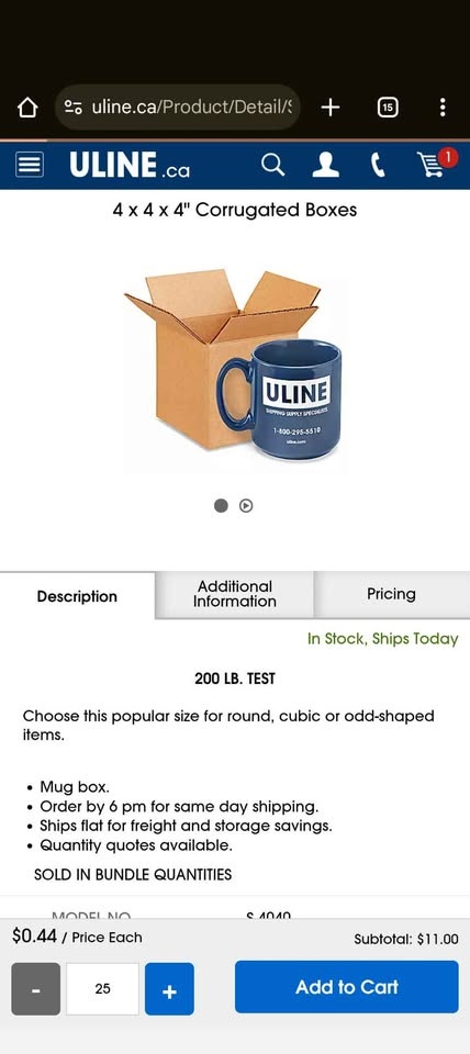 4x4x4" corrugated boxes from Uline (New - 28 available)