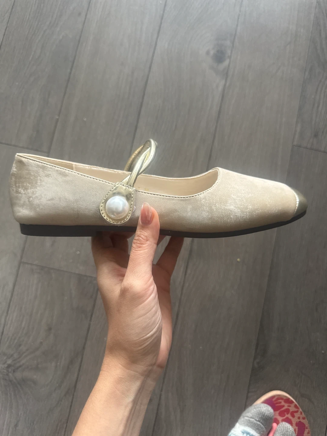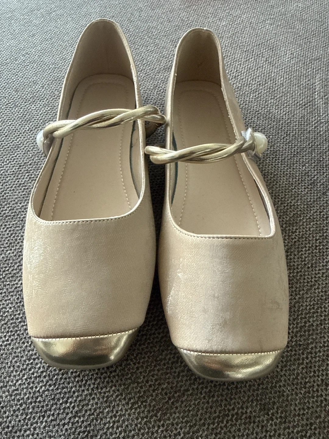 Selling a pair of beige Mary Jane style shoes. They're new and would be a lovely addition to any wardrobe! The size is 39.