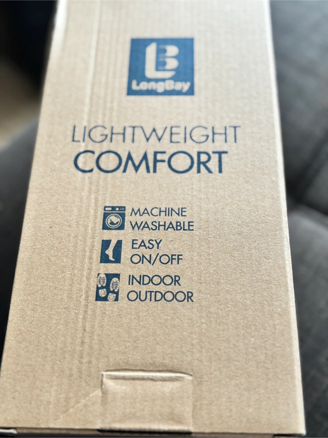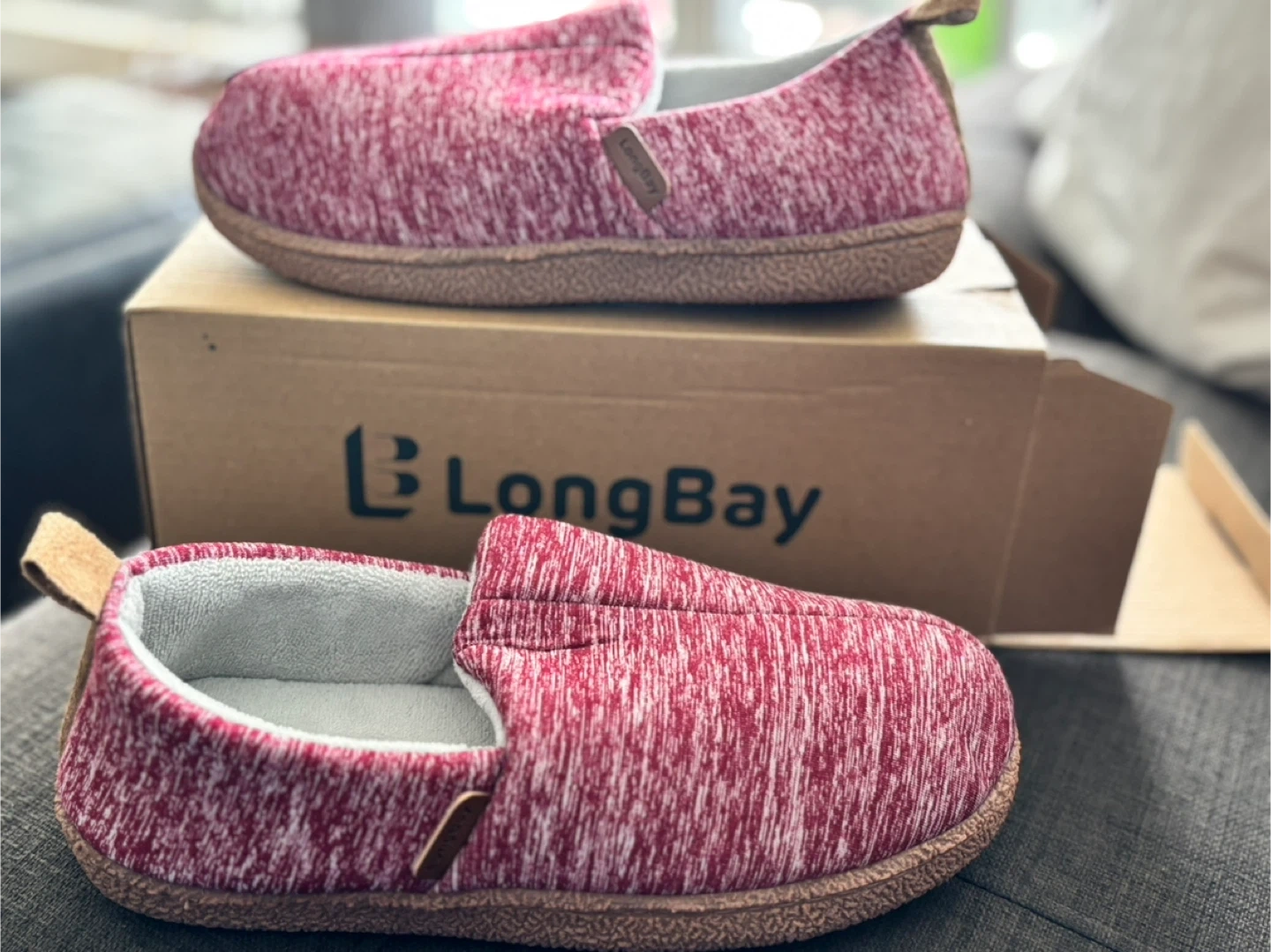 Cozy LongBay women's slippers in a size 7/8! These slippers feature a soft and breathable brushed jersey upper and a non-slip rubber outsole. The high-density memory foam provides extra comfort. They are machine washable and easy to slip on and off. Comes with the original box