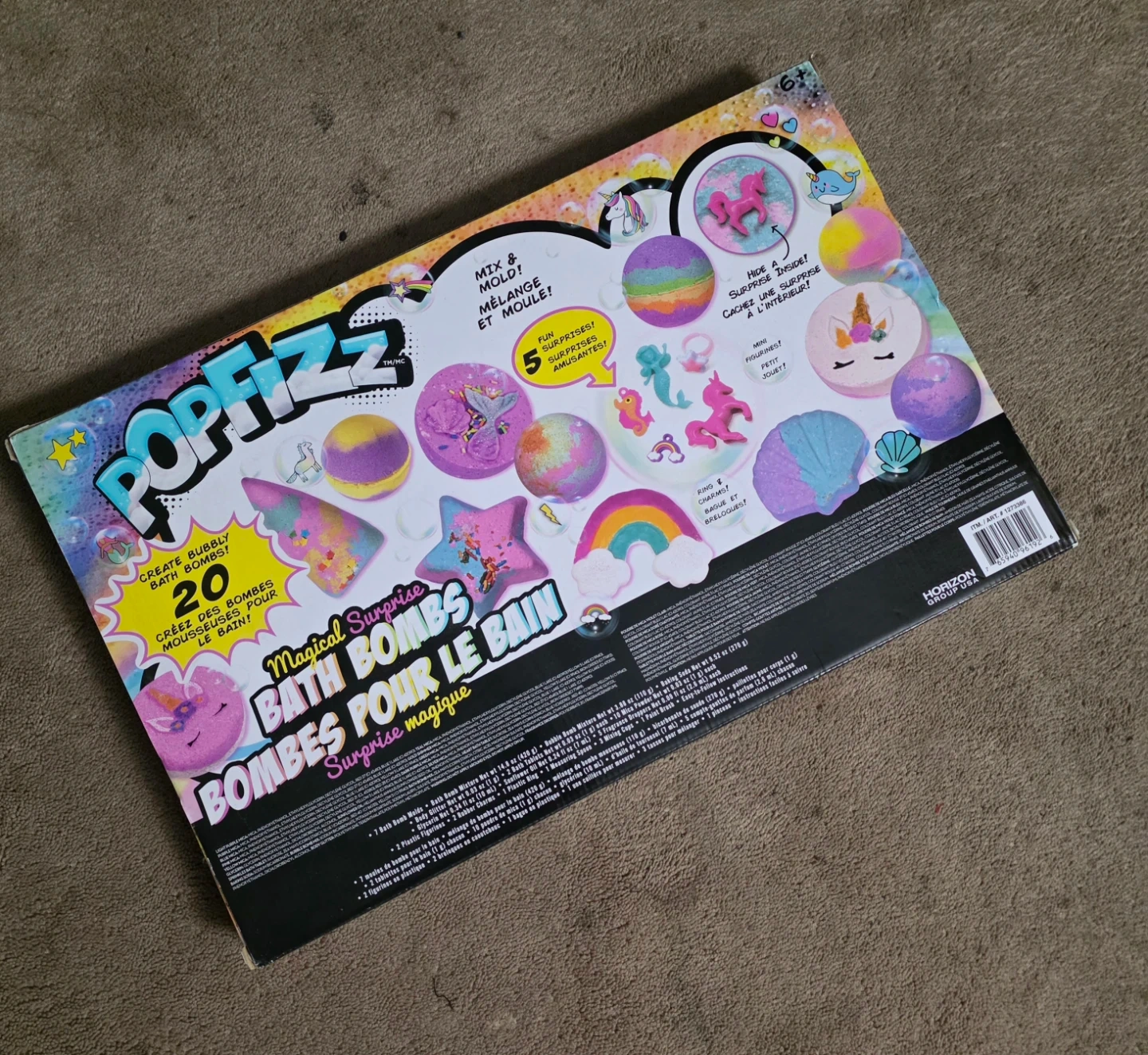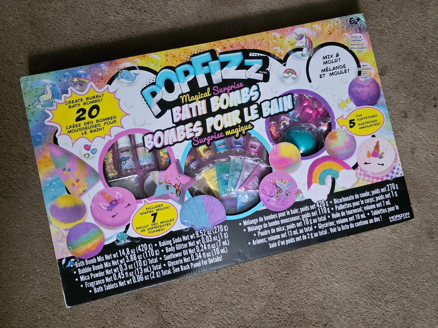 Create your own bubbly bath bombs with this PopFizz kit! Includes moulds and ingredients to make 20 magical surprise bath bombs. It's a fun activity for kids aged 6 and up.