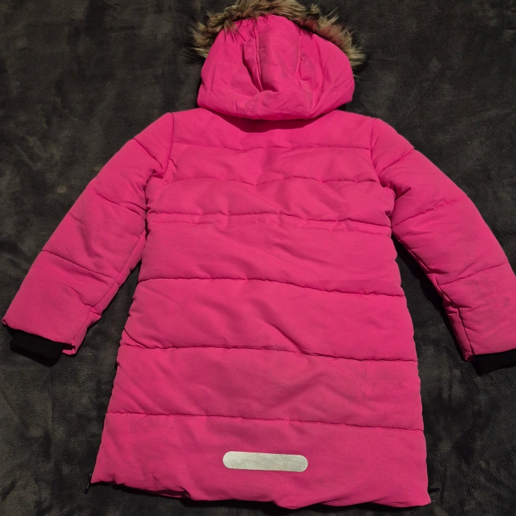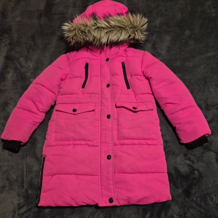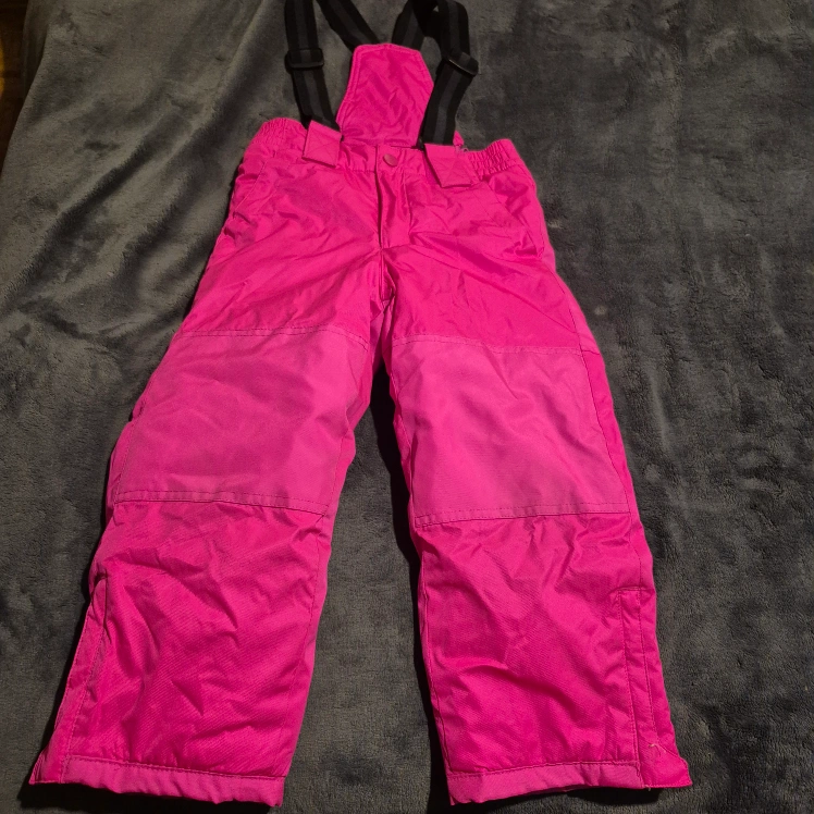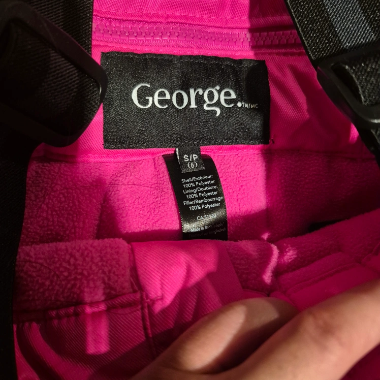 Selling a George brand snowsuit set for kids! The set includes a pink winter coat with a faux fur hood and matching snow pants with suspenders. The size is S (6).