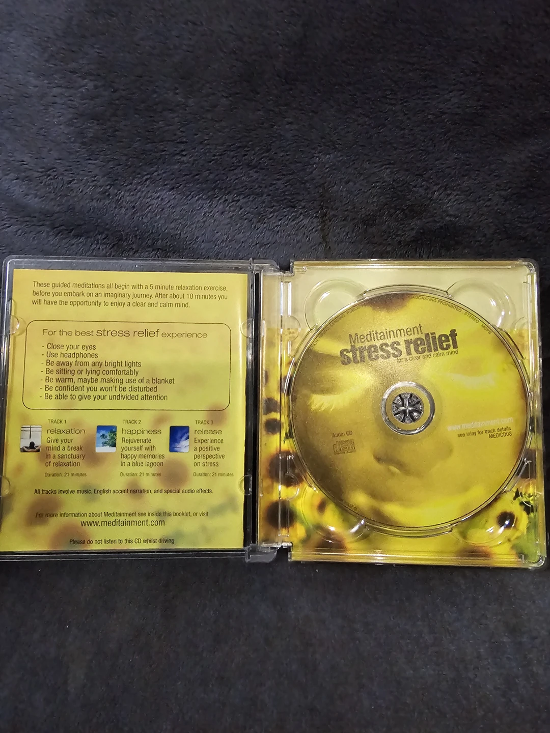 Meditainment Stress Relief Audio CD for a clear and calm mind. These easy-to-follow guided meditations will calm your thoughts and release you from feelings of stress. By following a simple storyline you are guided through a relaxing experience which will better prepare you for the demands of modern living