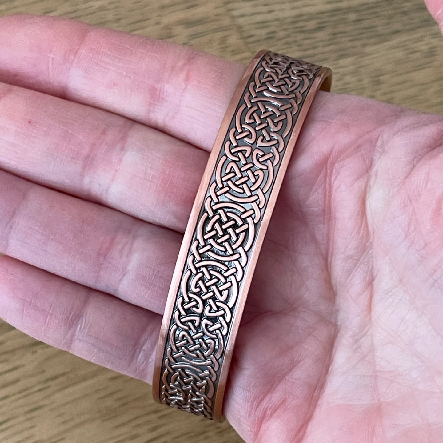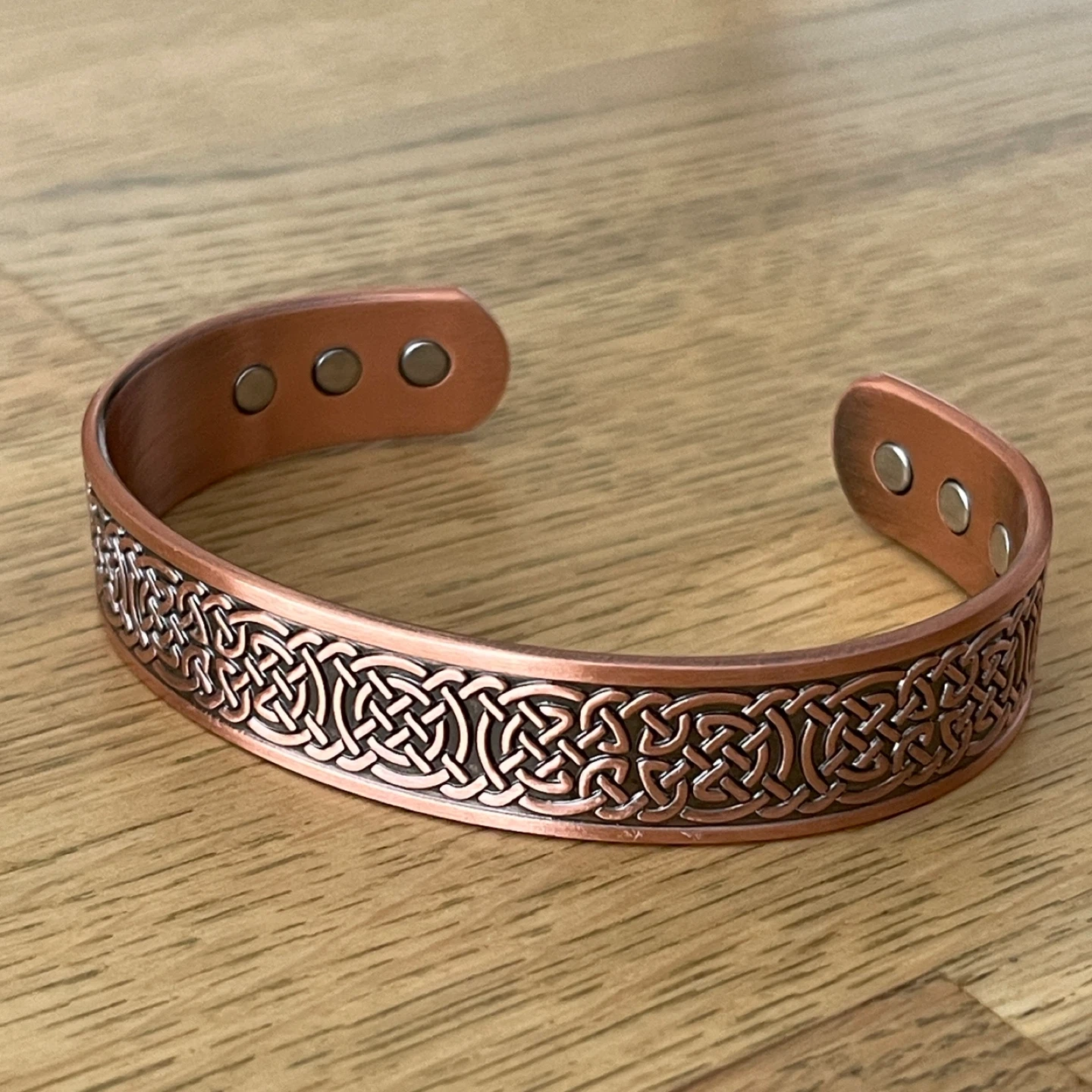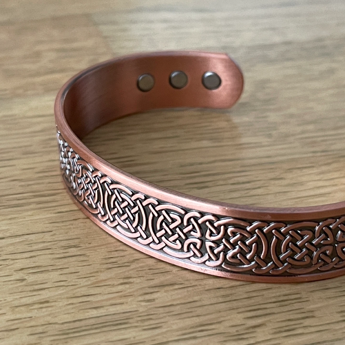 Magnetic Copper cuff bracelet - Celtic knot pattern
