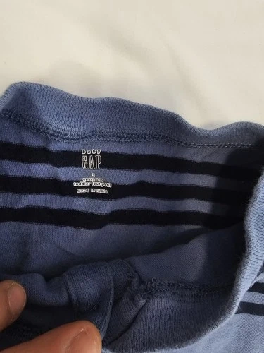 Gap waffle -knit Henley shirt in blue and black stripes.