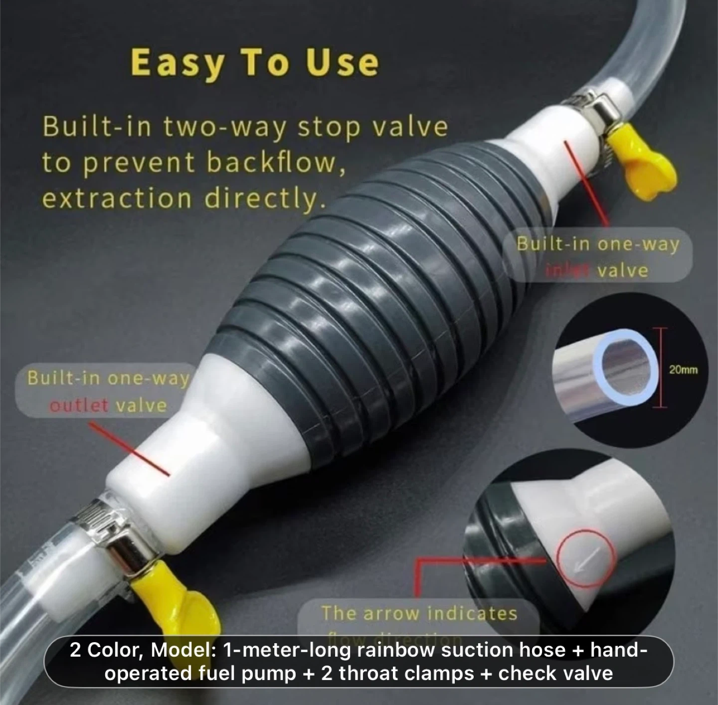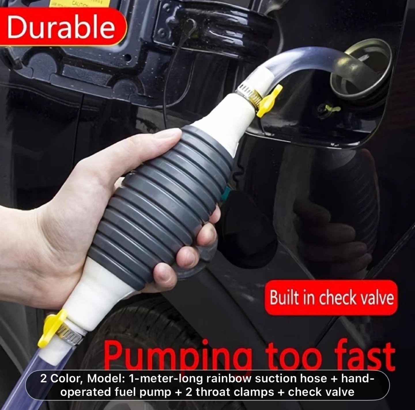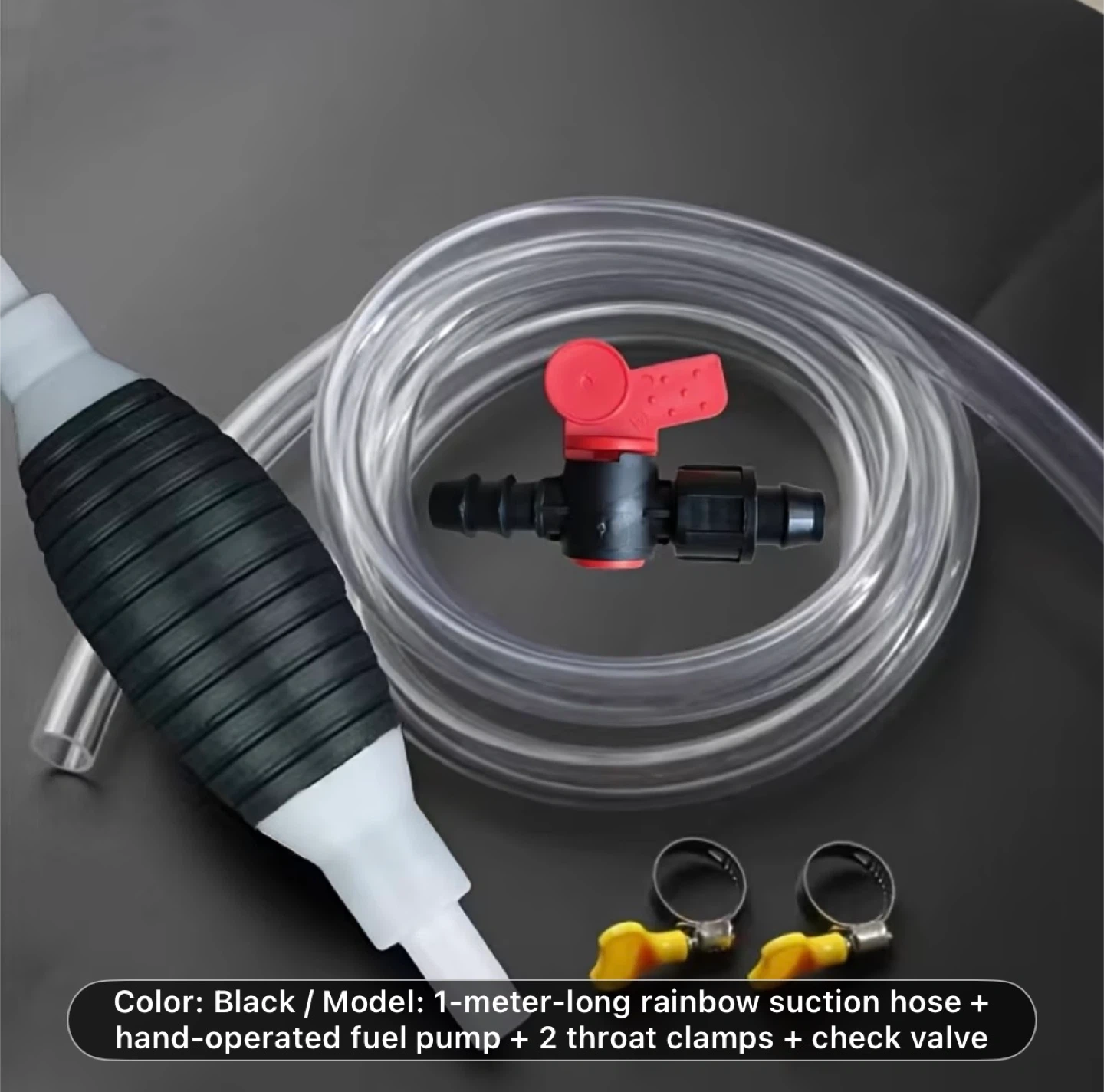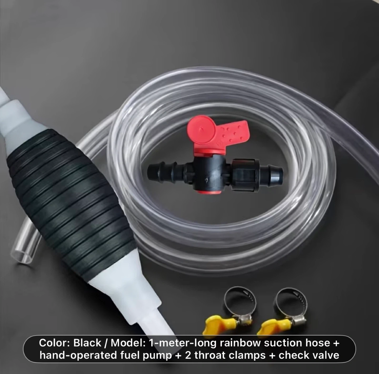 Multifunctional Liquid Suction Pump, Manual Fuel Transfer Pump with Gasoline Hose, Portable Siphon Pump Suitable for Gasoline, Diesel, and Other Liquids/Water. Includes 39.37inch Siphon Hose + Hand Crank Fuel Pump + 2 Hose Clamps + Leak-Proof Valve